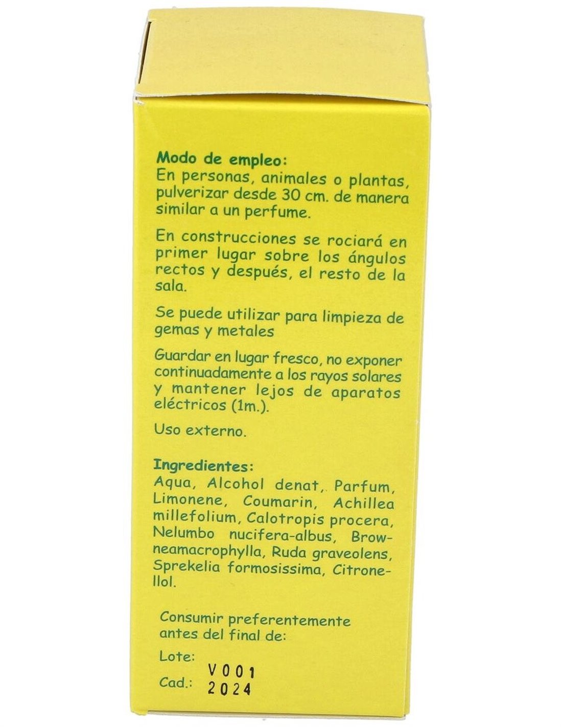 En personas, animales o plantas pulverizar desde 30 cm de manera similar a un perfume.