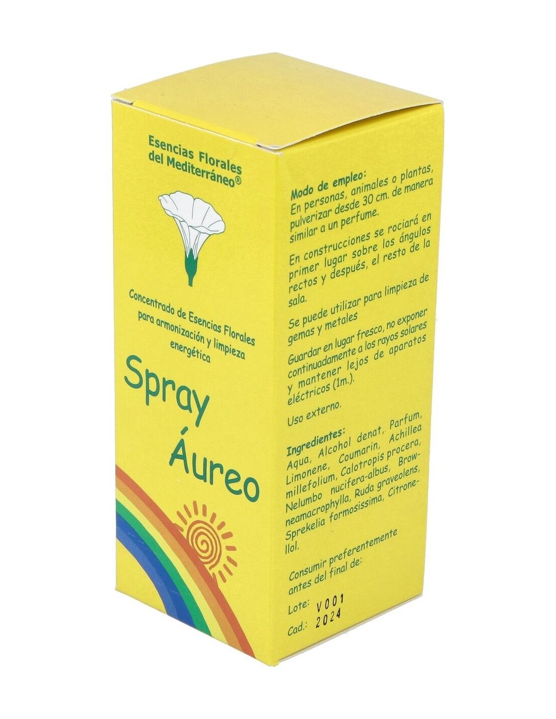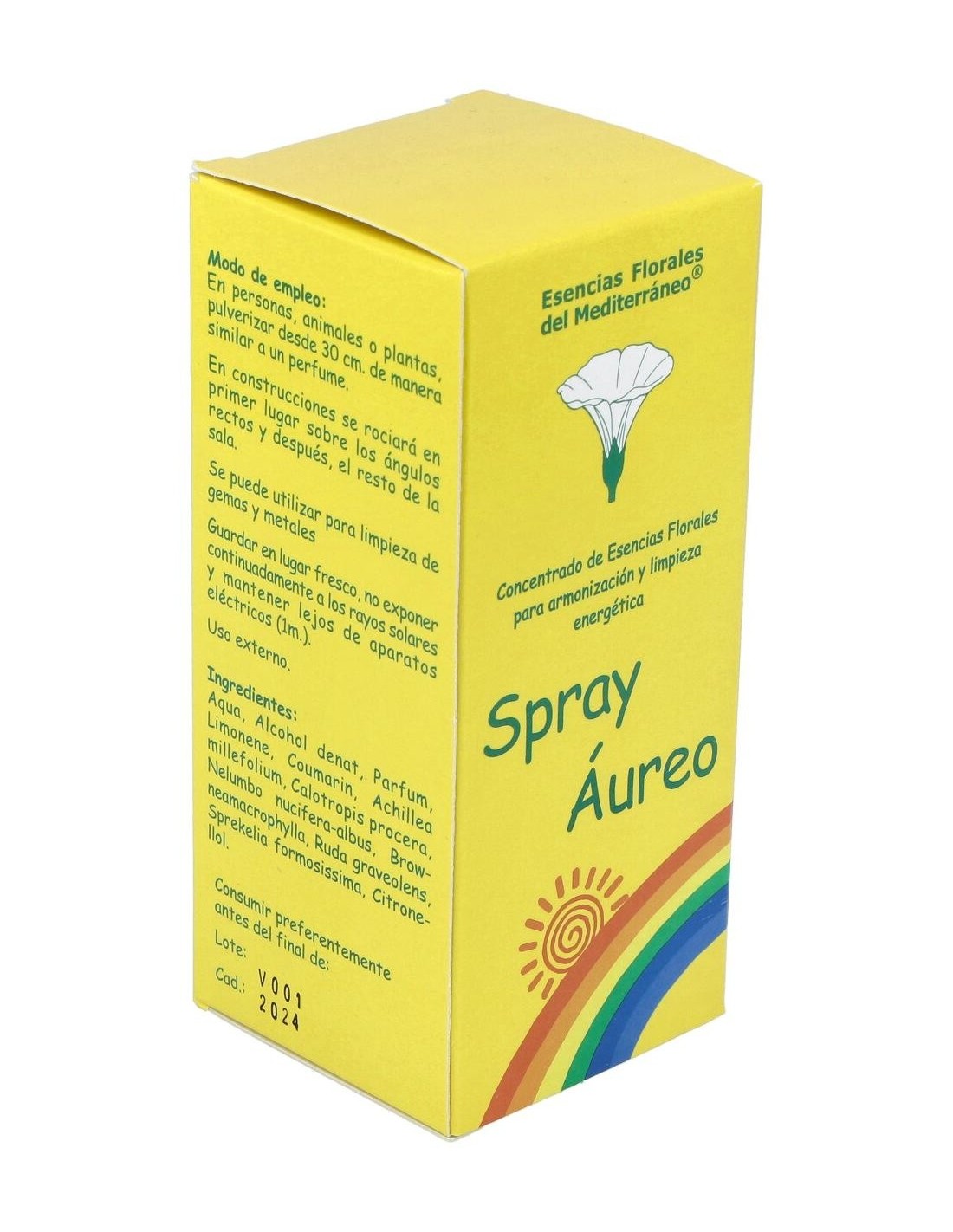 Spray de uso externo con esencias florales obtenidas de flores silvestres. Armonizador energético. Revitalización, limpieza y desbloqueo energéticos del campo electromagnético de los seres vivos. Ofrece protección energética preventiva de la contaminación ambiental y de las radiaciones producidas por el deterioro de la capa de ozono.