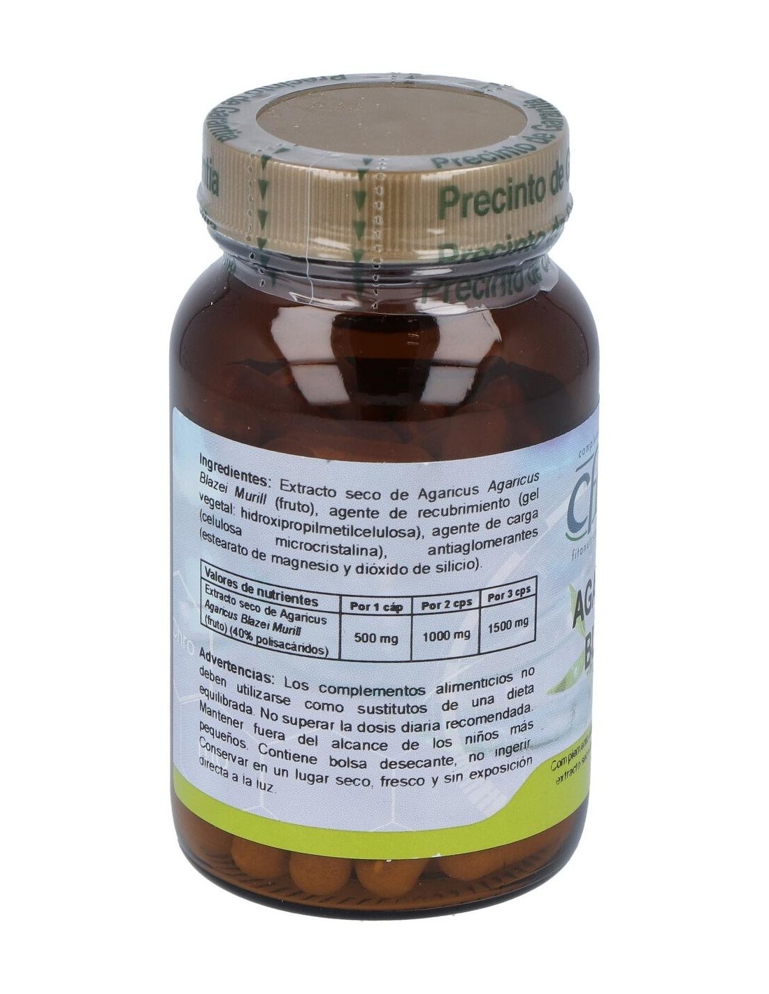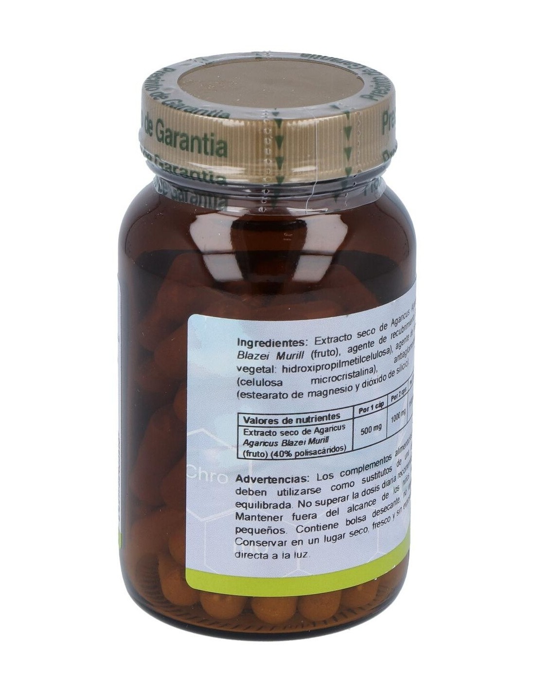 Complemento alimenticio en forma de cápsulas, elaborado a base de extracto estandarizado de agaricus blazei, que ayuda a reforzar las defensas naturales del sistema inmunitario. Ayuda a proteger la función hepática, y aporta propiedades antihistamínicas. De efecto antioxidante, contribuye a disminuir la acción nociva de los radicales libres sobre el organismo.