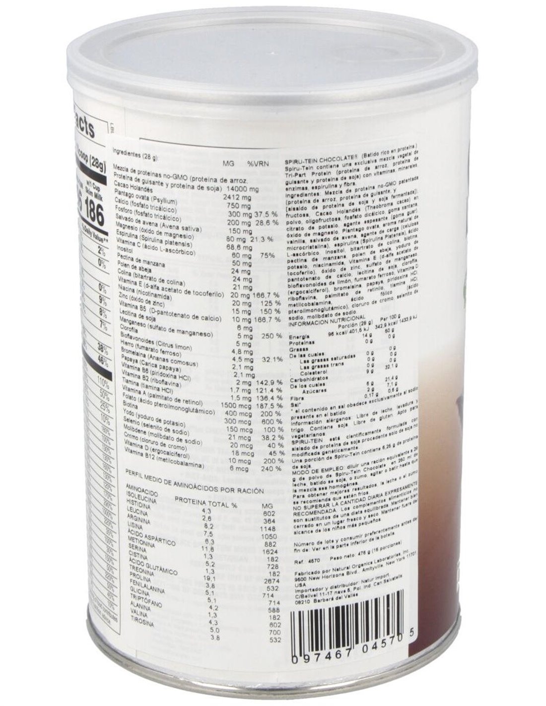 Batido de proteínas vegetales de alta calidad con espirulina que proporciona además vitaminas, minerales, enzimas y fibra, obteniéndose así de un completo suplemento de proteína vegetal. Especialmente indicados para deportistas y en dietas de control de peso, y en general para todas aquellas personas que necesiten un aporte extra de proteínas en su dieta.