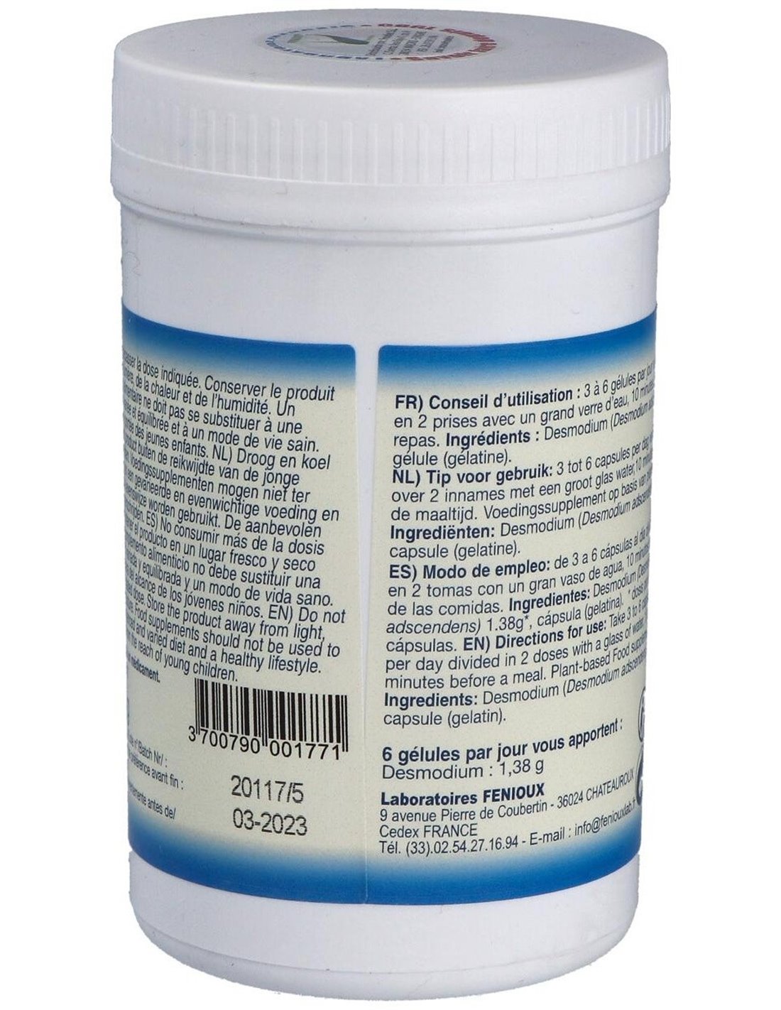 El Desmodium 230Mg. 180Cap. de Fenioux es un suplemento natural para personas que buscan apoyar la salud hepática, formulado con extracto de Desmodium que contribuye al bienestar del hígado.