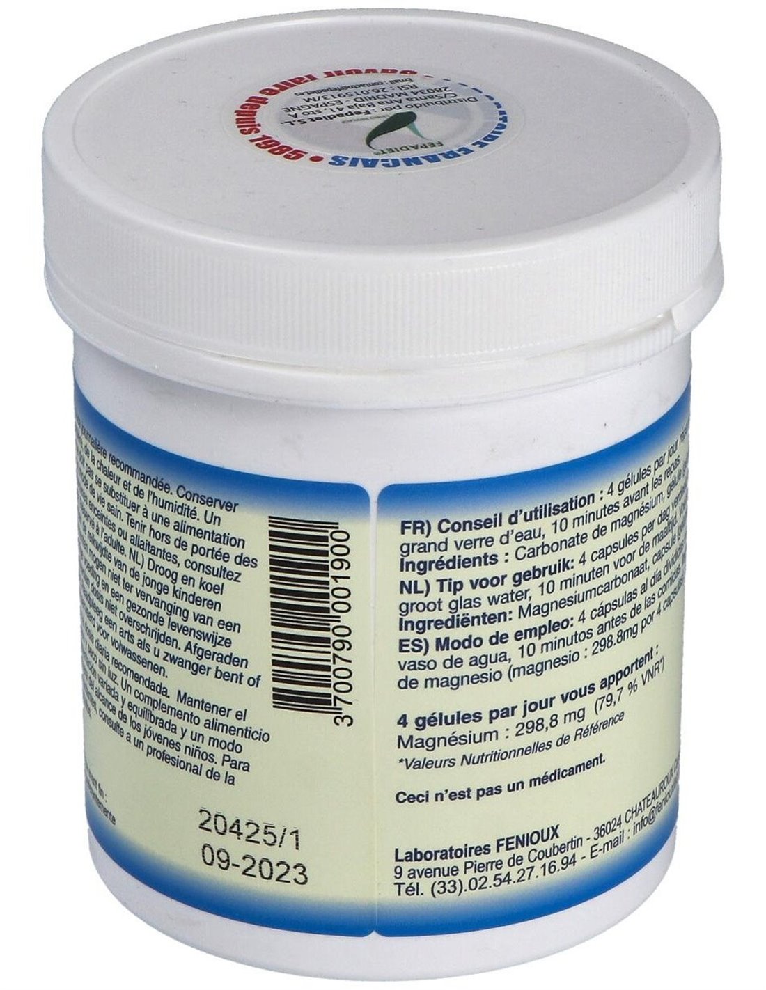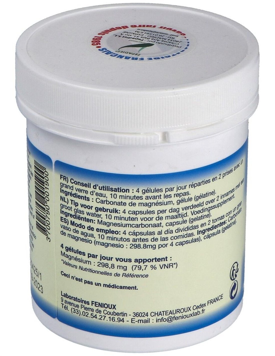 Las cápsulas de Carbonato De Magnesio de Fenioux están formuladas para ofrecer una fuente confiable de magnesio, un mineral involucrado en múltiples funciones corporales. Su presentación en cápsulas facilita su integración en diferentes estilos de vida, aportando comodidad y control en la ingesta diaria.