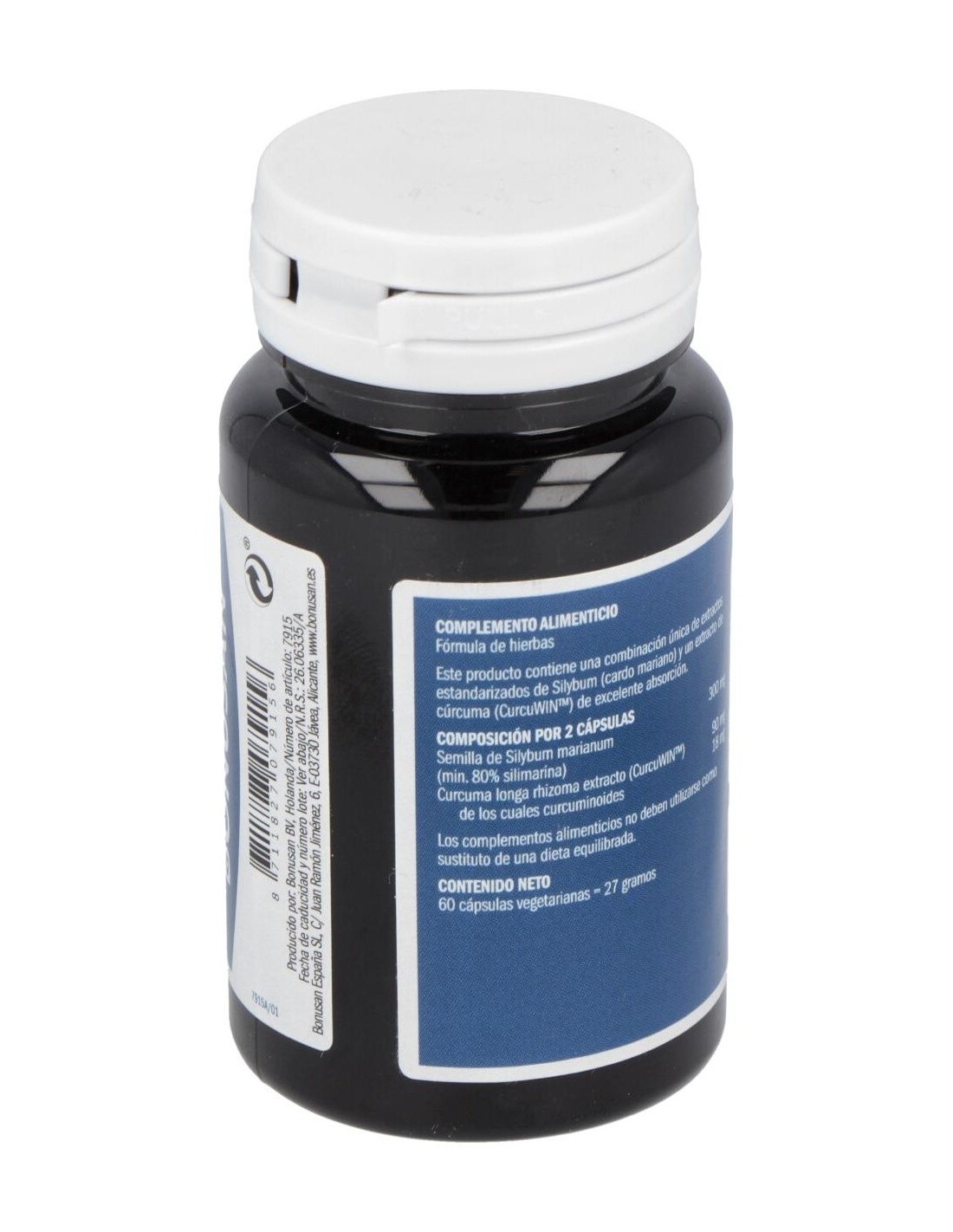Curcuma longa, pared de la cápsula (hidroxipropilmetilcelulosa), antiaglomerante (sales magnésicas de ácidos grasos).