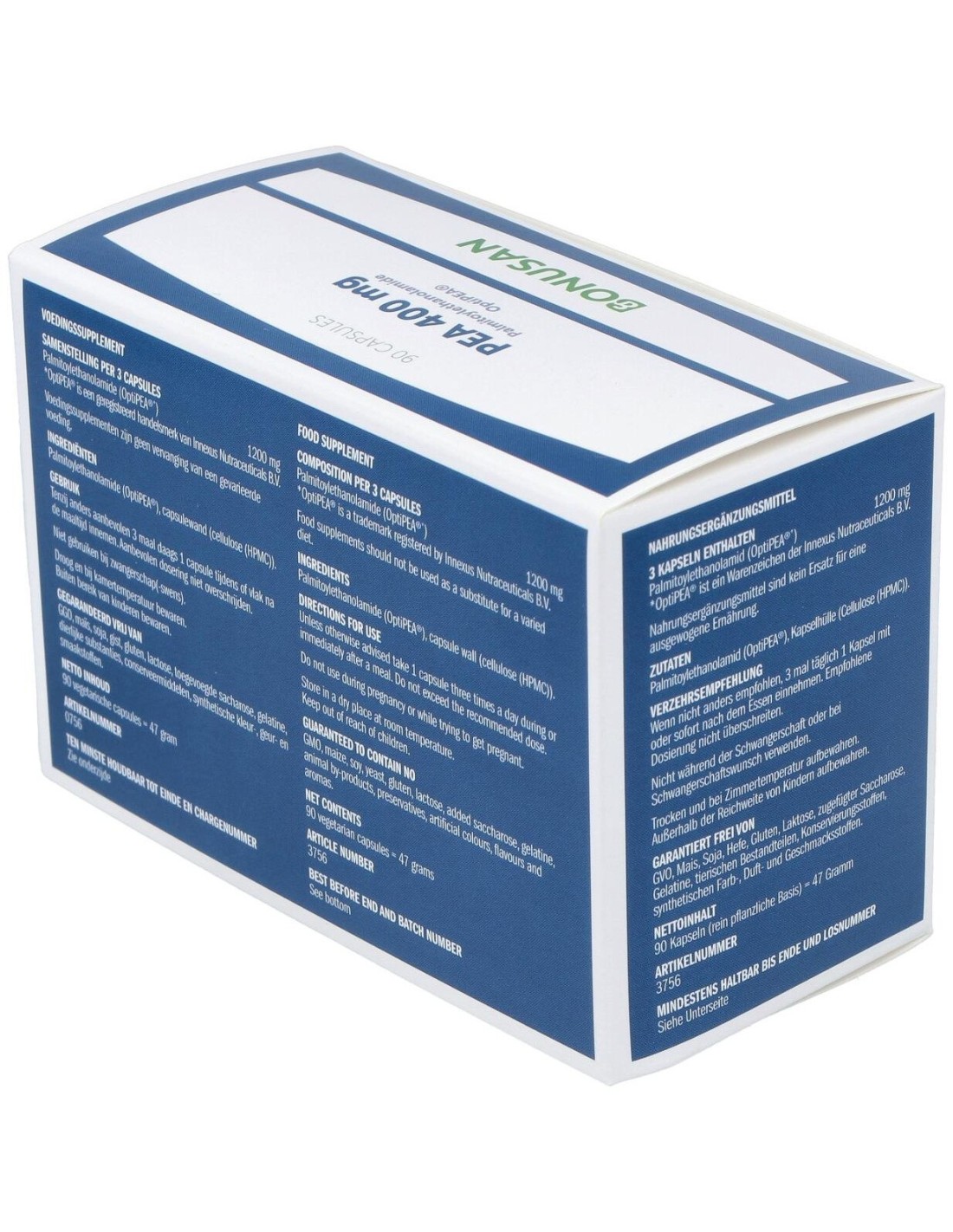 PEA 400 mg viene en una cápsula vegetal, con una alta dosificación, es puro y libre de aditivos. El blister útil le permite llevar fácilmente PEA 400 mg con usted donde quiera que vaya.