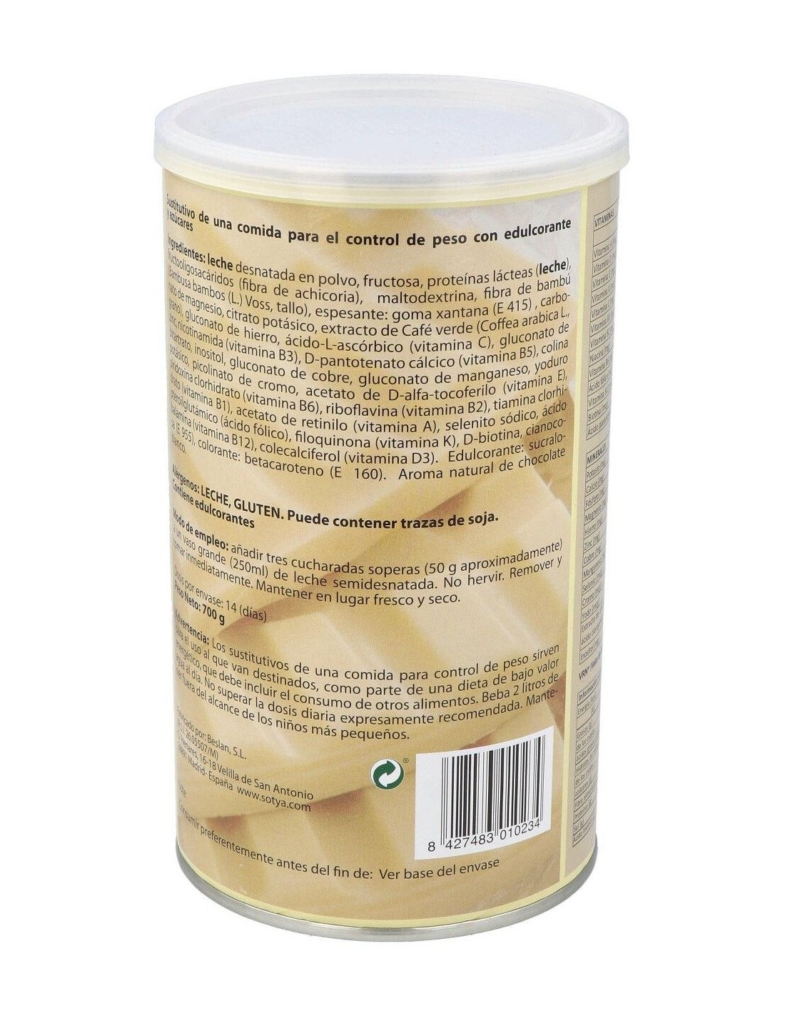 El Batidos Saciantes 700G Polvo Sabor Chocolate Blanco de Sotya es un suplemento nutricional para personas que buscan controlar el apetito, ofreciendo sensación de saciedad prolongada gracias a su fórmula equilibrada en proteínas y fibra.
