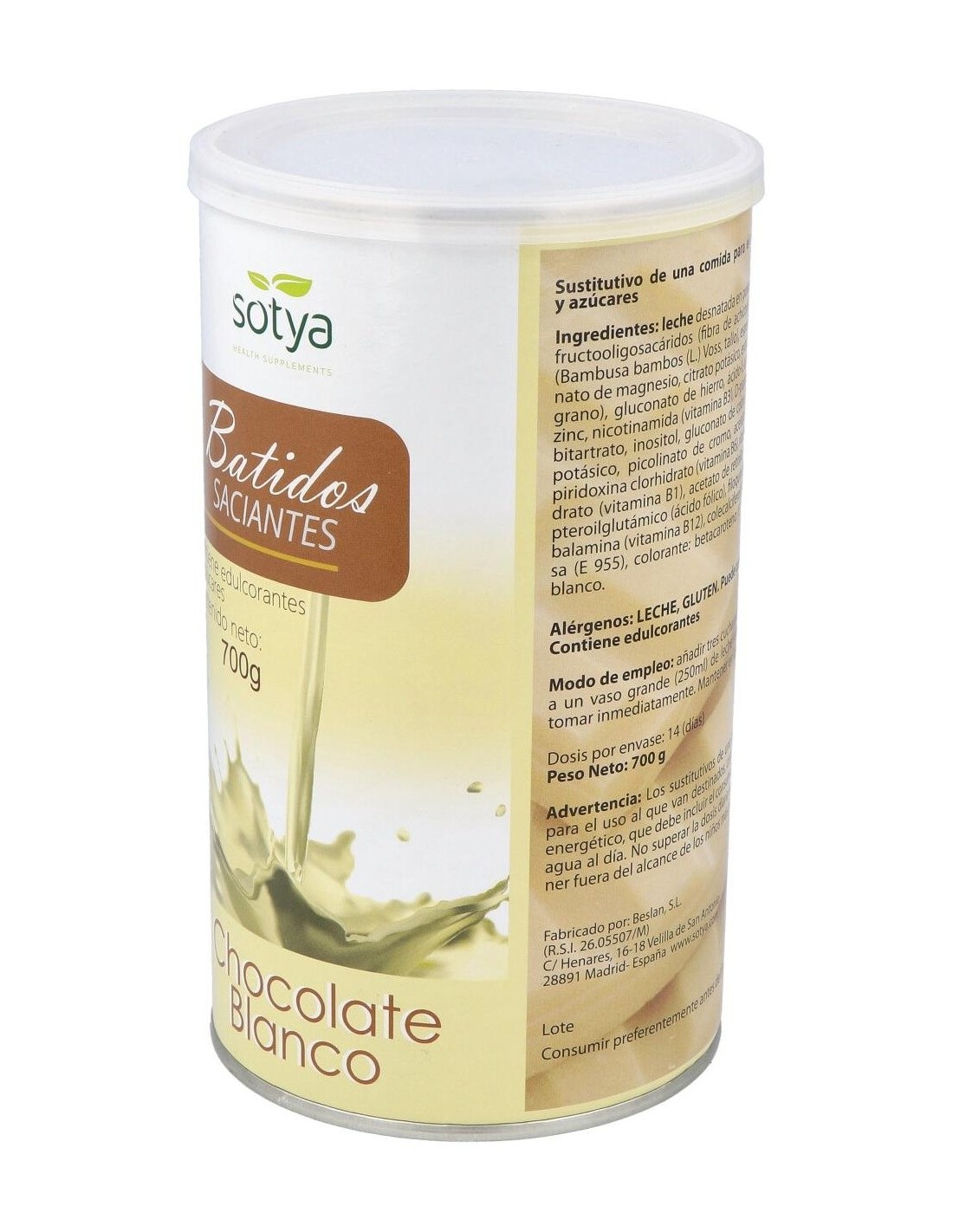 Batidos Saciantes 700G Polvo Sabor Chocolate Blanco de Sotya
