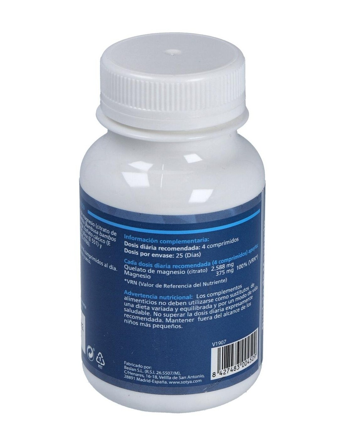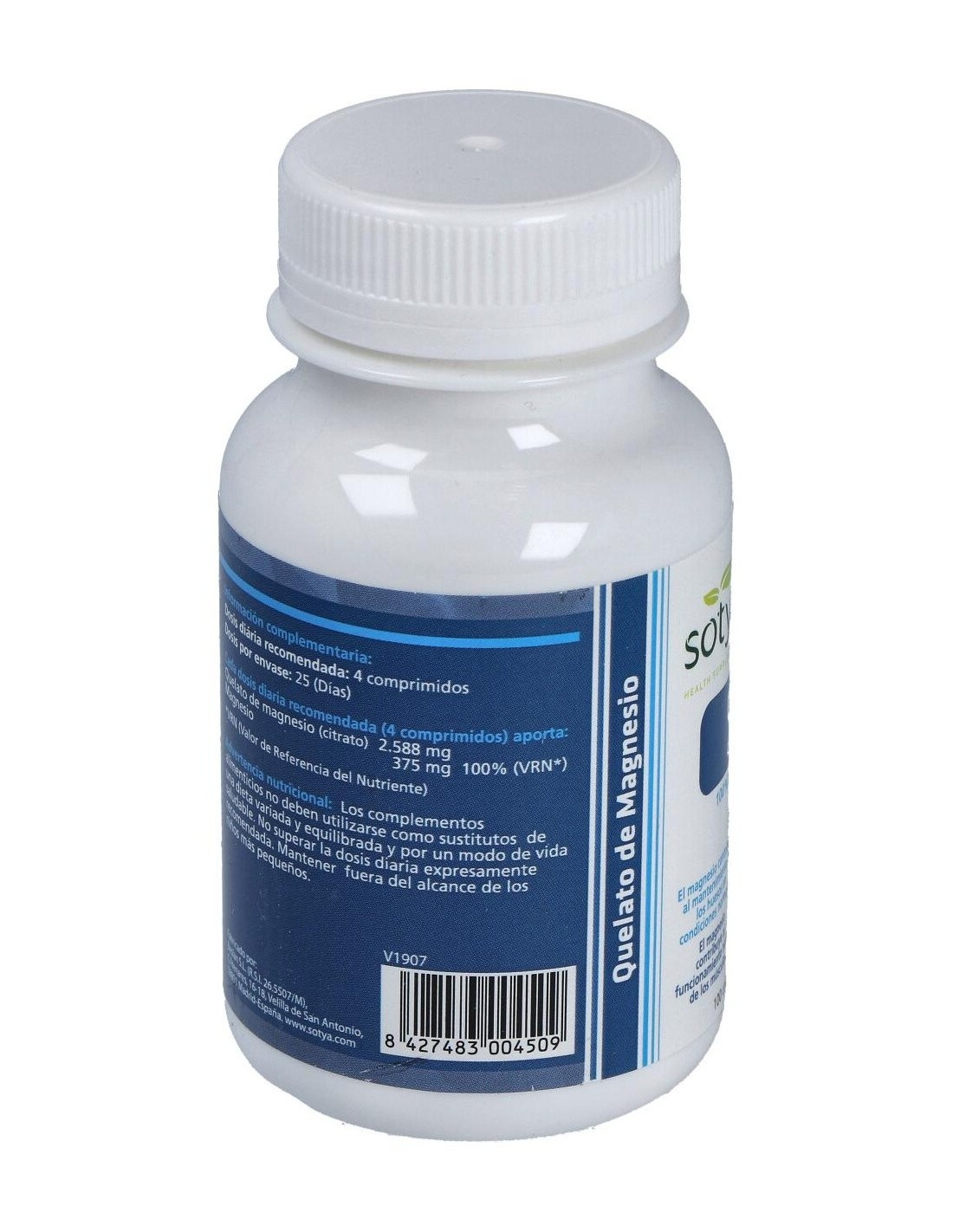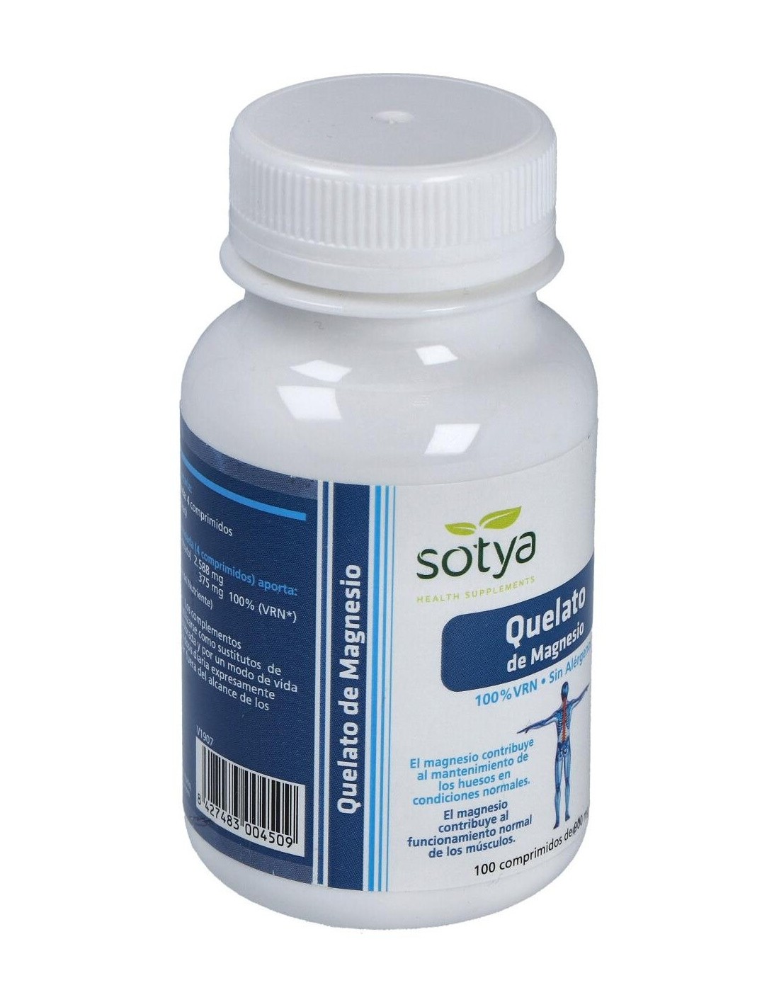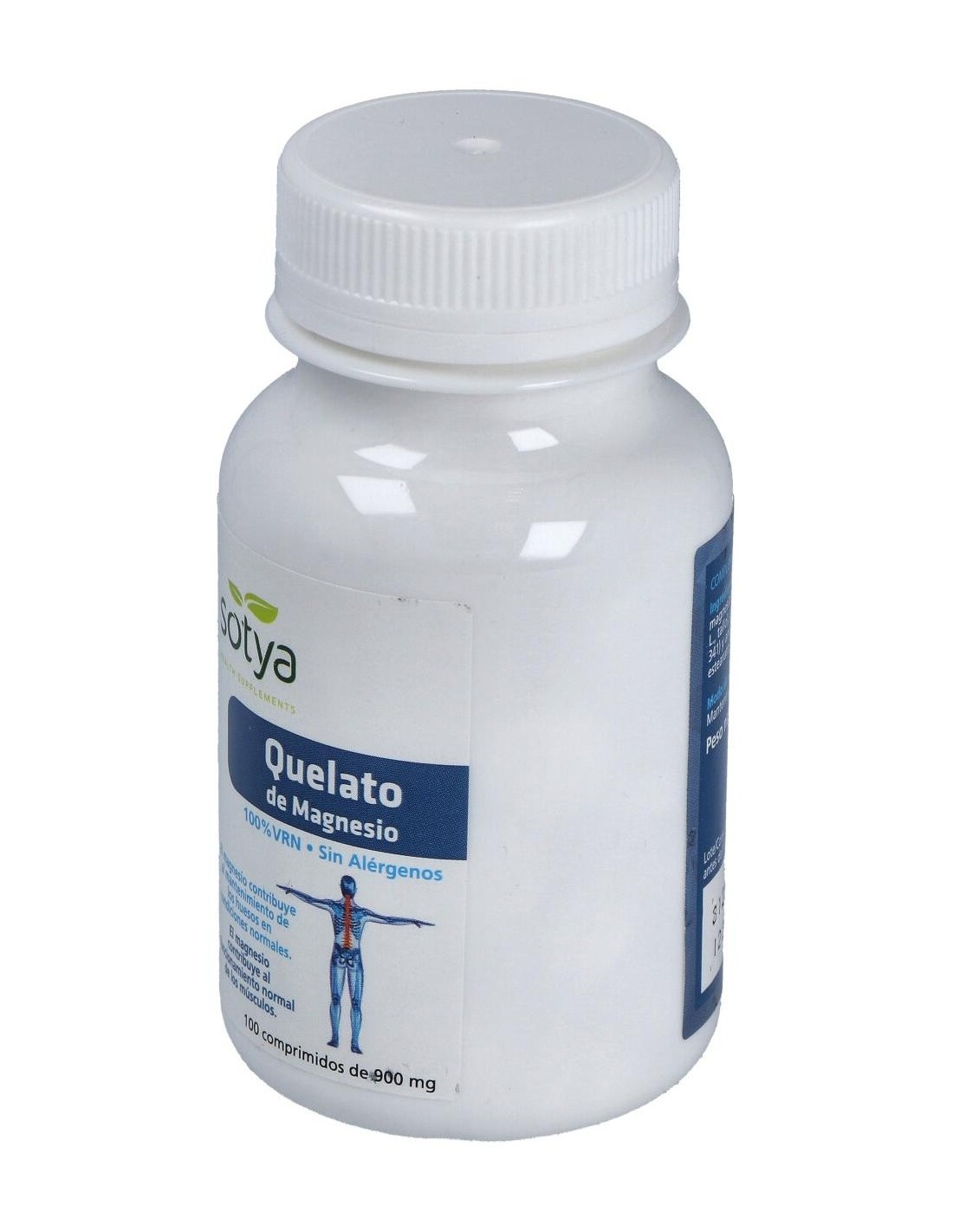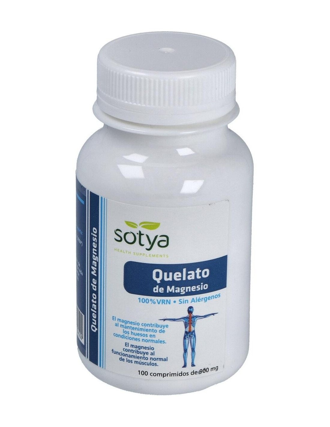 Quelato De Magnesio 900Mg Comp. 100U de Sotya ofrece una opción práctica para complementar la ingesta de magnesio, apoyando el mantenimiento de funciones corporales relacionadas con este mineral.