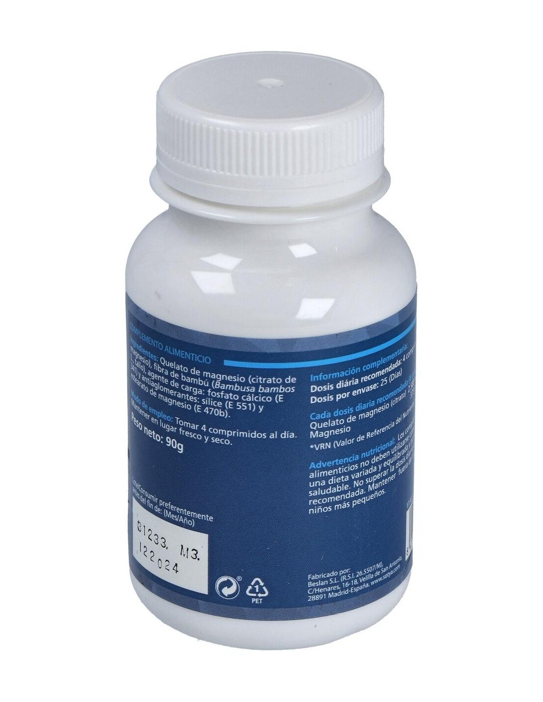 - Cada comprimido contiene 900 mg de magnesio en forma quelada, facilitando una mejor absorción y aprovechamiento por el organismo.