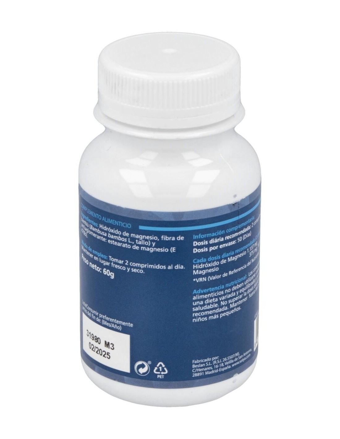 El producto está elaborado con ingredientes seleccionados para asegurar la calidad y estabilidad del magnesio durante su vida útil. Su formato compacto facilita su transporte y almacenamiento, adaptándose a diferentes estilos de vida.
