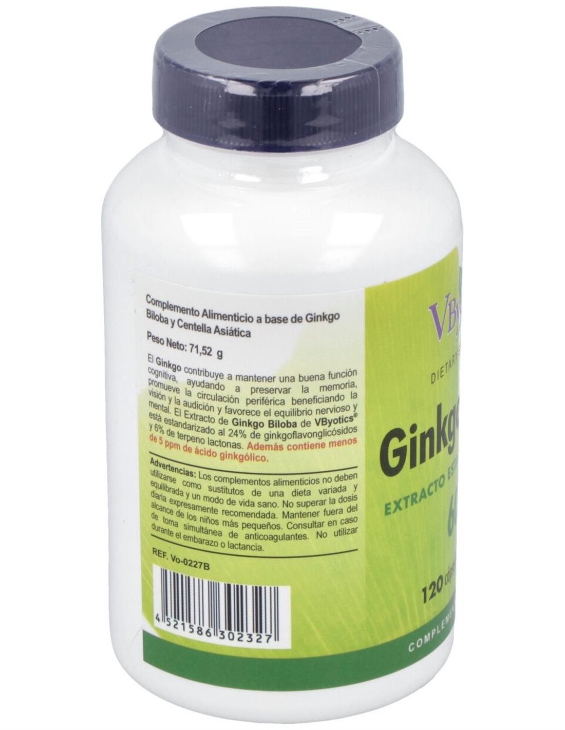 El Ginkgo Biloba 60Mg. 120Cap. de Vbyotics es un suplemento natural para adultos que busca apoyar la función cognitiva y la circulación, gracias a su fórmula estandarizada de extracto de Ginkgo Biloba.