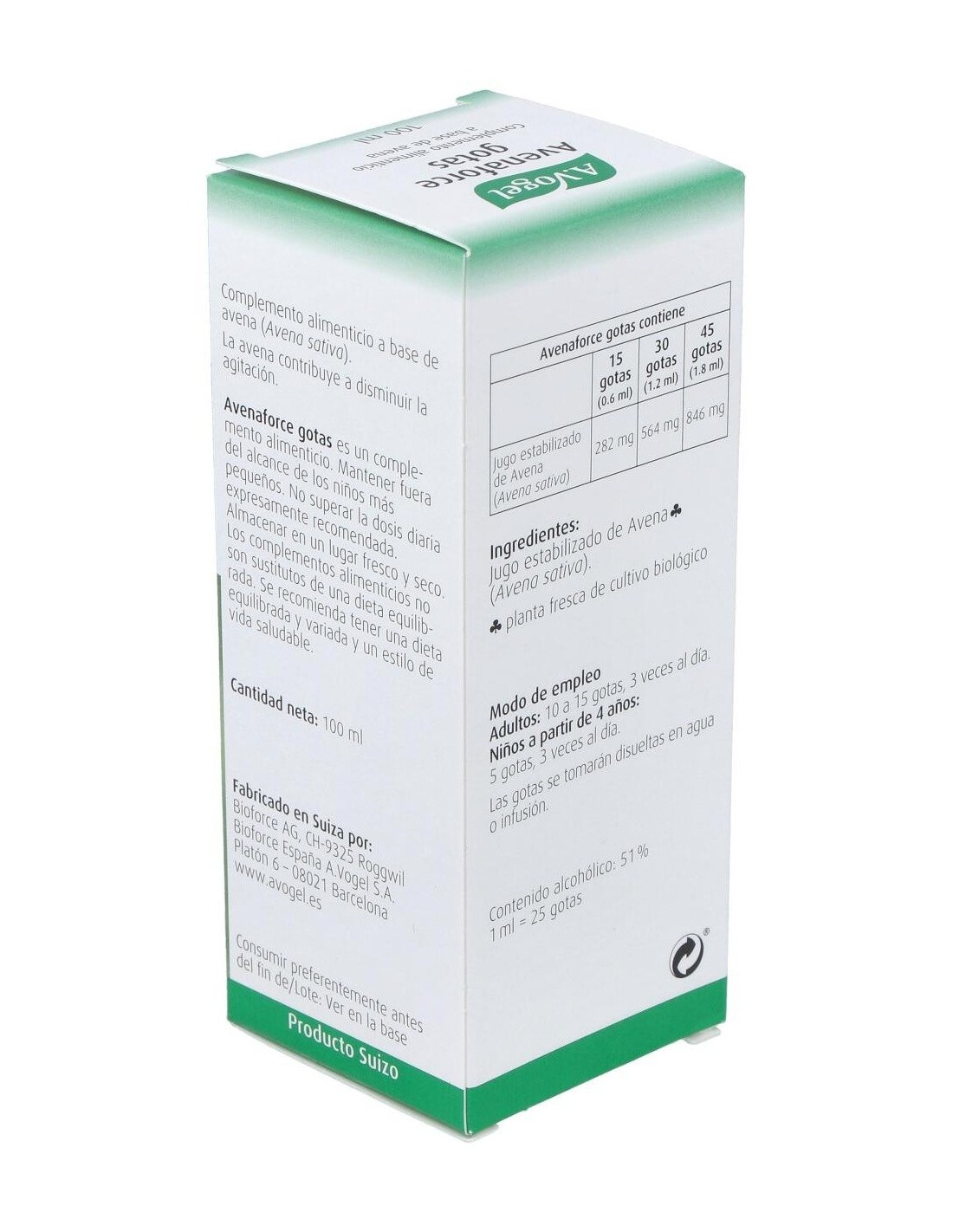 Avenaforce Gotas Ml 100 de A.Vogel combina funcionalidad y comodidad, ofreciendo una opción versátil para quienes buscan complementar su bienestar con un formato líquido.