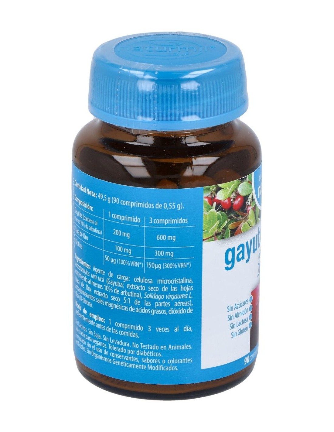 - Cada comprimido contiene 200 mg de extracto de gayuba, reconocido por su composición específica.