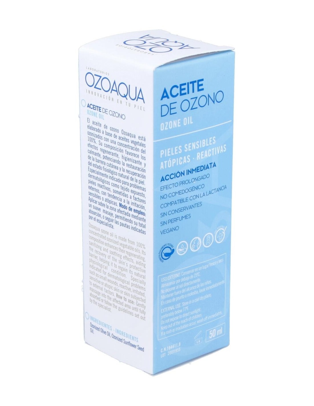Los aceites ozonoidados conservan numerosas propiedades beneficiosas del ozono: hidratante, antioxidante, higienizante, regenerante, cicatrizante, calmante y reparador, entre otras. Hidratante: beneficia el mantenimiento del manto hidrolipídico de la piel, ofreciendo un estado óptimo de hidratación en la misma. Antiinflamatorio: Ayuda a reducir la inflamación e hinchazón de la piel ya que inhibe la cascada inflamatoria y la síntesis de mediadores celulares. Higienizante: La actividad anti-microbiana ayuda a que la piel no se sobre-infecte fácilmente con bacterias, virus y hongos. Antioxidante: Protege de los radicales libres retardando el envejecimiento cutáneo. Mejora el funcionamiento de los mecanismos reparadores de la piel. Estimula el sistema inmunitario. Cicatrizante: Recupera la piel y la oxigena. Colabora en la regeneración de la epidermis. Evita la hiperpigmentación postlesional. Calmante: Alivio de la sensación de prurito, picor e irritación en la piel.