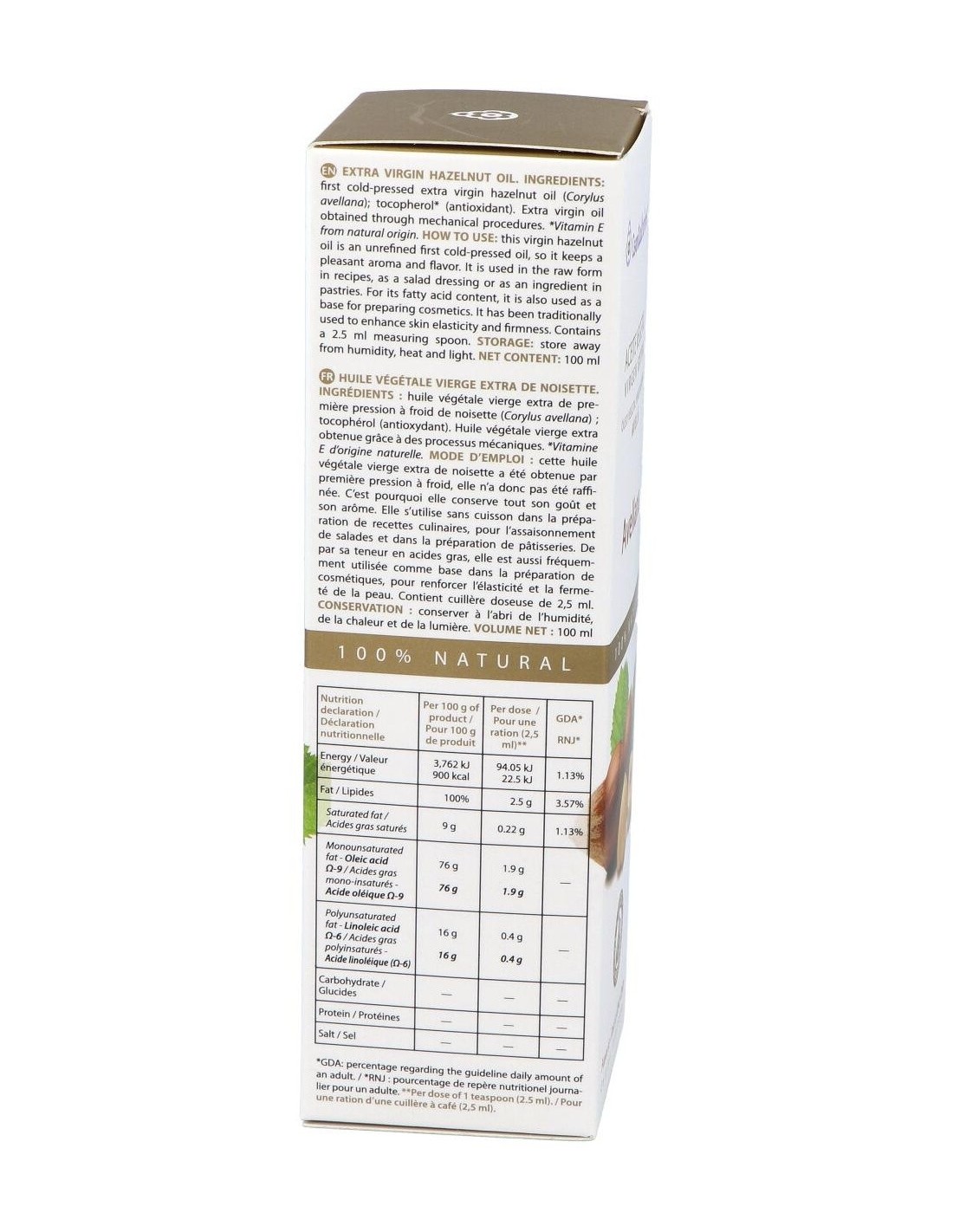 Ingredientes:100% aceite virgen de avellana de 1ª presión en frío. Modo de empleo: Puede aplicarse directamente para el masaje de niños y adutos. Puede utilizarse también en sinegia con otros aceites vegetales, para la creación de fórmulas. Presentación: Frasco con dosificador de 100 ml.