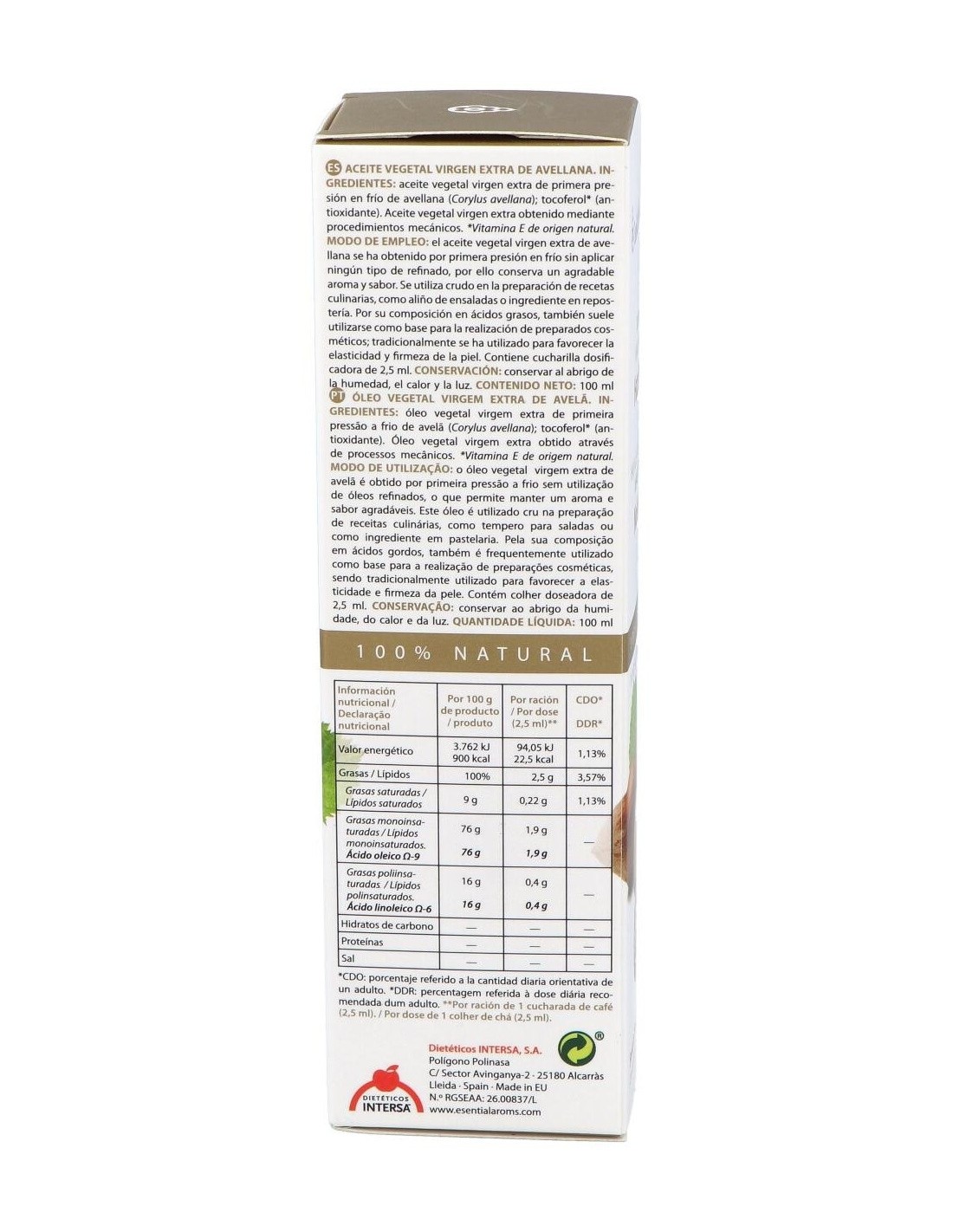 Aceite Vegetal Avellana 100 Ml de Esential Aroms