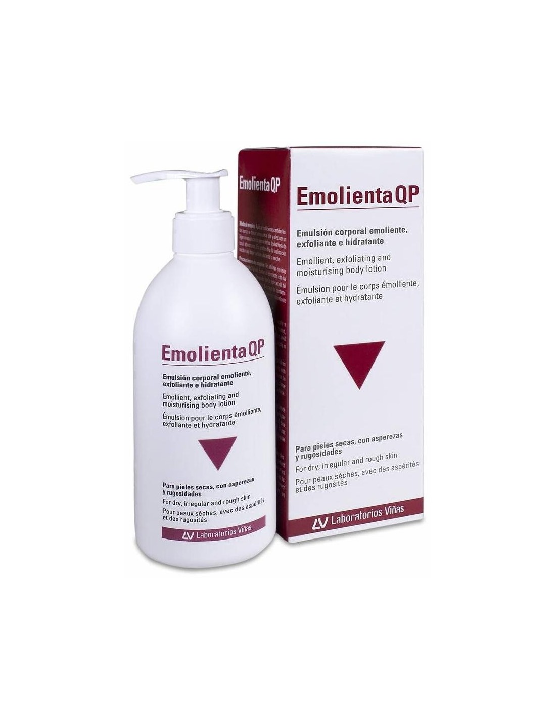 EMOLIENTAEmolienta QP es una emulsión corporal específicamente diseñada para pieles ásperas y rugosas con sequedad. Gracias a su formulación a base de ácido salicílico y ácido glicólico, aporta un efecto queratolítico-exfoliante que reduce las asperezas y alisa las rugosidades de la piel, reduciendo los estados descamativos, al mismo tiempo que consigue un intenso efecto hidratante. Constituye un tratamiento ideal para combatir los tapones córneos que obstruyen el orificio folicular, contribuyendo a restablecer el manto hidrolipídico, además de calmar la sensación de disconfort. Emolienta QP está especialmente formulada para su aplicación en zonas extensas del cuerpo (particularmente brazos, muslos y nalgas) por su fluidez y rápida absorción sin dejar residuos. No contiene perfumes.