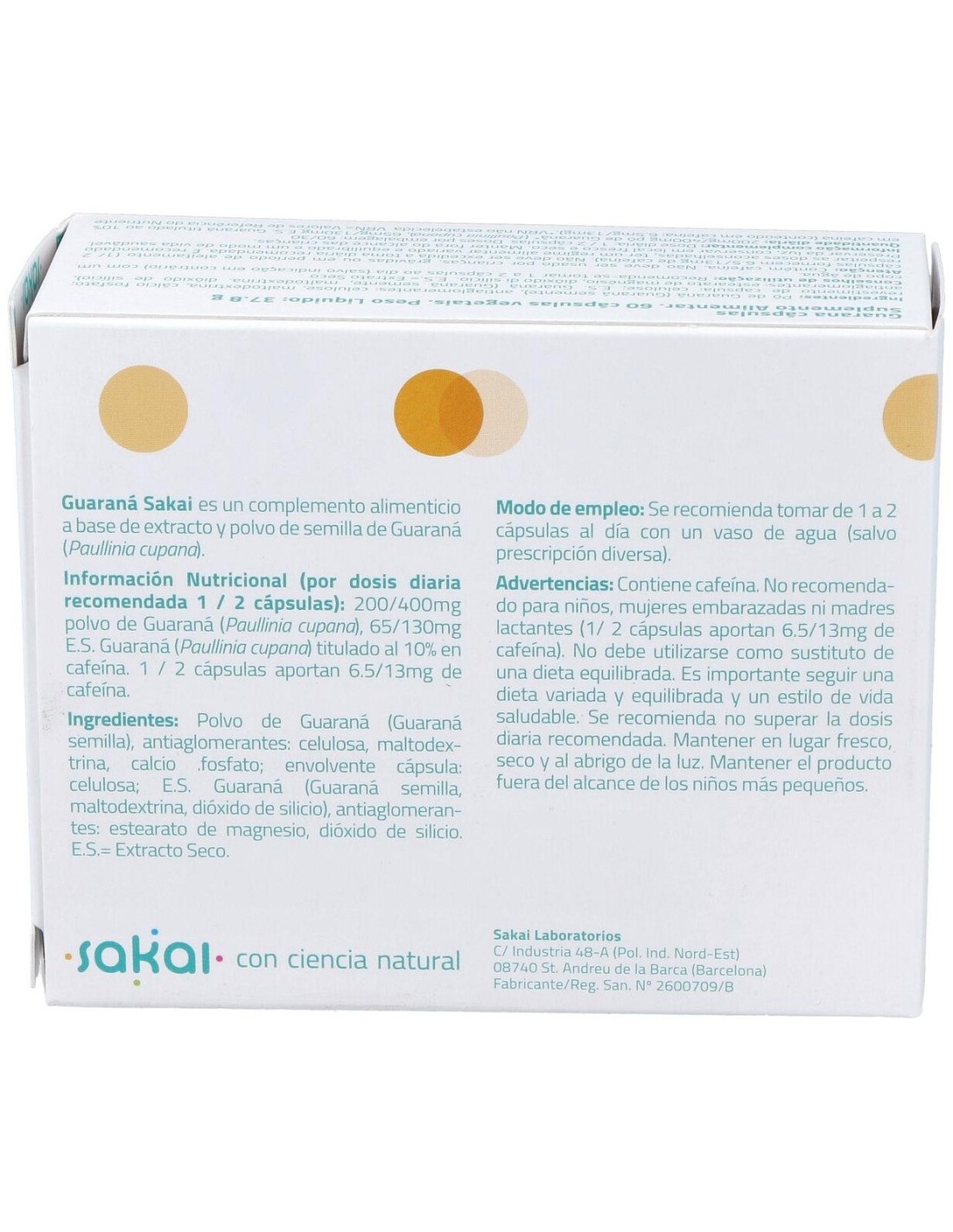 Las cápsulas de Guarana 60Cap. de Sakai están elaboradas con ingredientes que cumplen con estándares de calidad, presentados en un envase que protege el producto de la humedad y la luz. Su diseño permite una ingesta sencilla, adaptándose a diferentes estilos de vida.