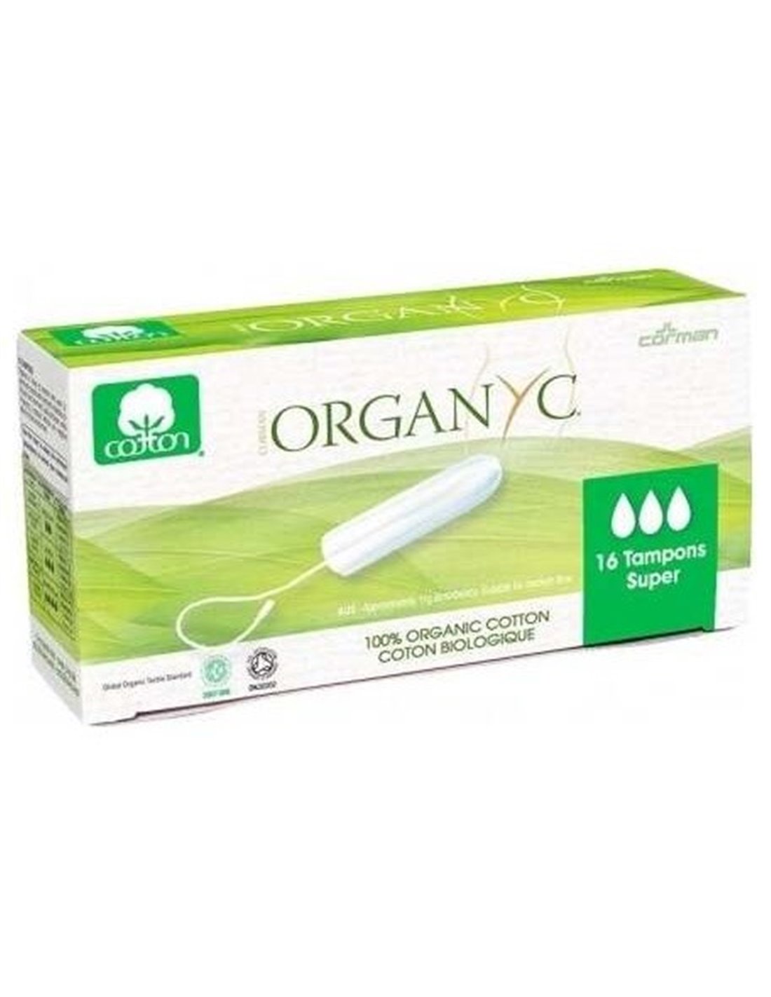 Tampón sin aplicador súper 100% algodón orgánico, 16ud de Organyc