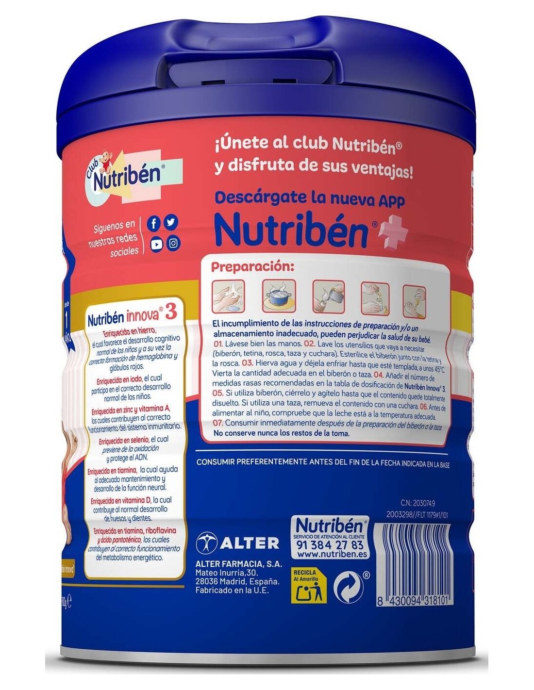 Esta fórmula está elaborada para alimentar al bebé a partir de los 12 meses de edad. Además, se puede preparar con cualquier papilla de Nutribén® y combinar con otras gamas de productos. Con el paraprobiotico BPL1.