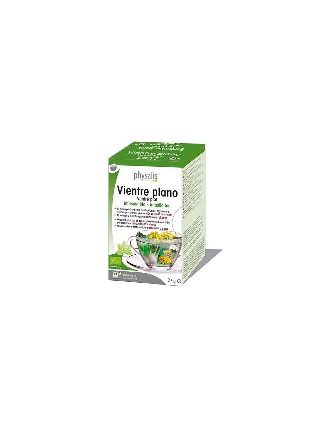 El Vientre Plano Infusión de Physalis es una mezcla herbal diseñada para personas que buscan complementar su bienestar digestivo y apoyar la sensación de ligereza abdominal. Esta infusión combina ingredientes naturales seleccionados para integrarse fácilmente en una rutina diaria de cuidado personal.