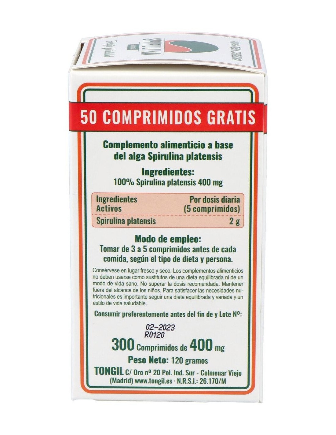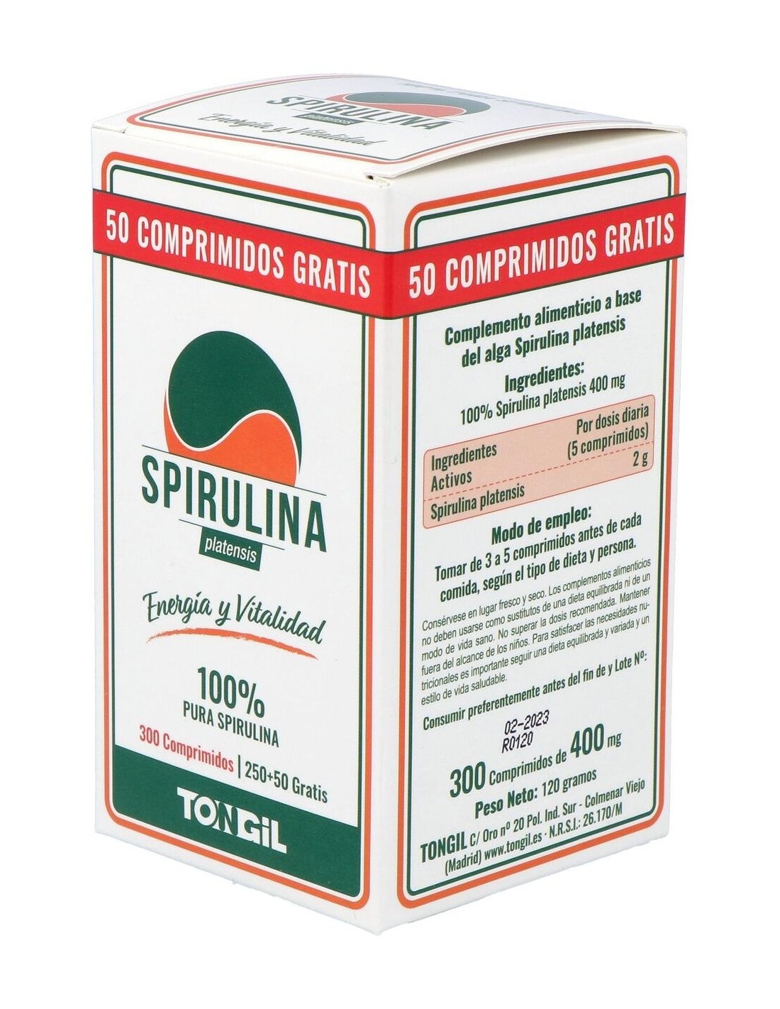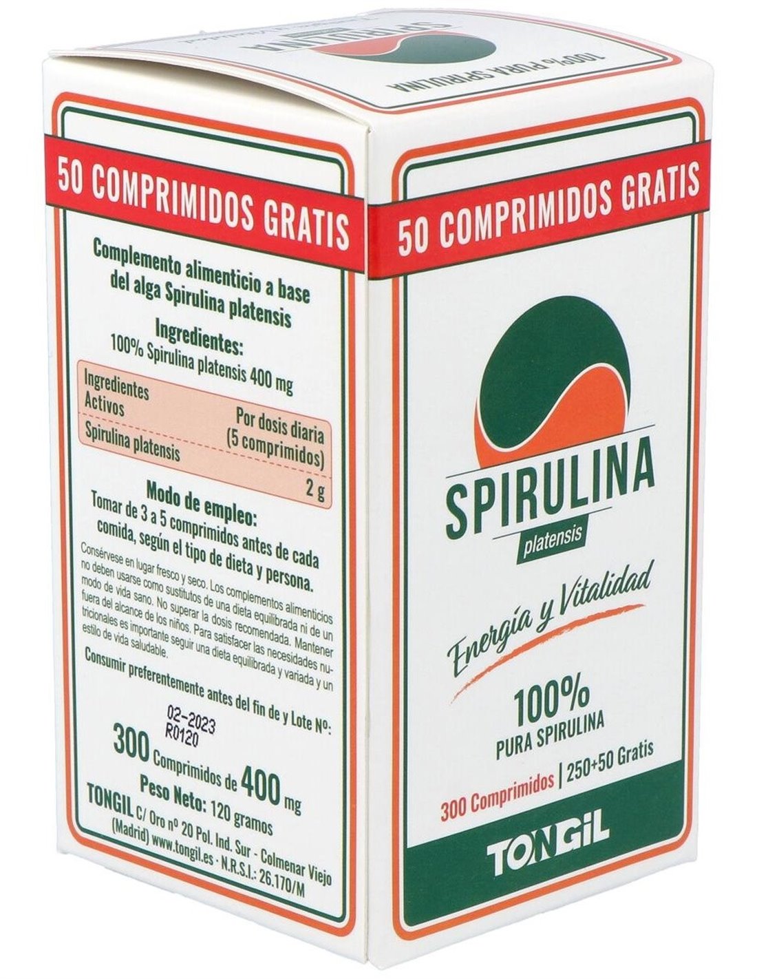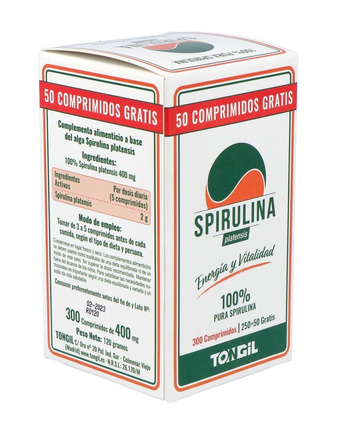 - Contiene 300 comprimidos de spirulina, facilitando una dosificación práctica y prolongada.