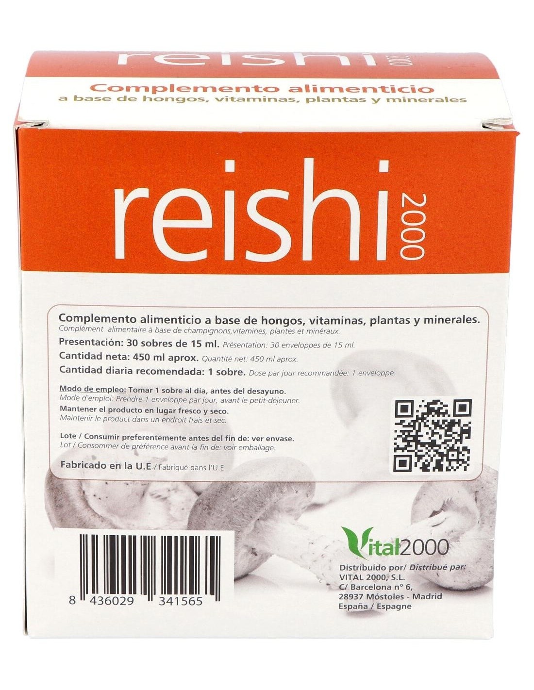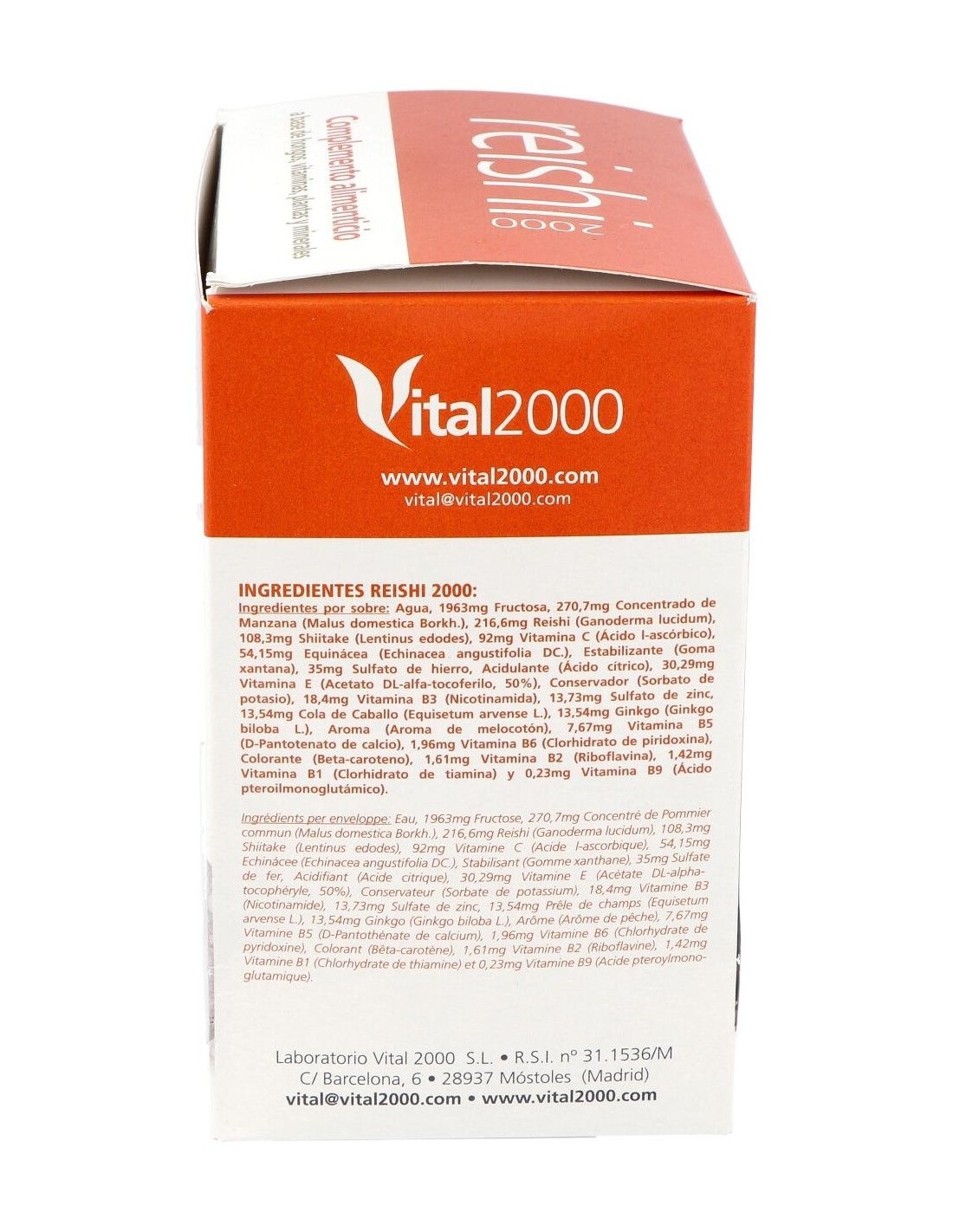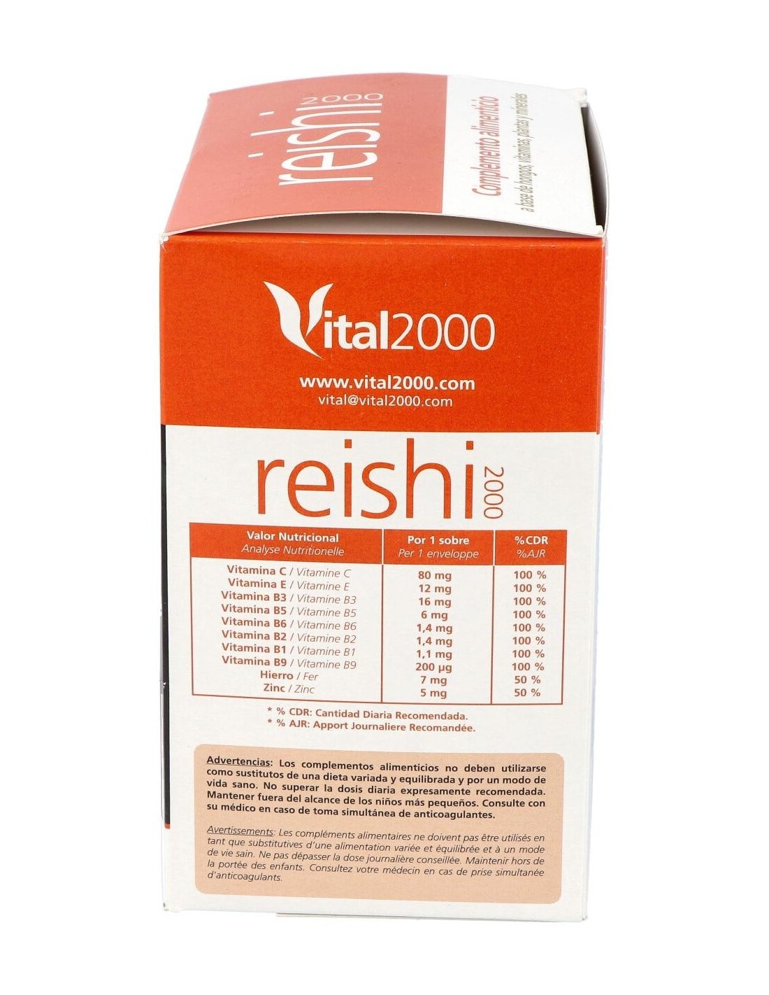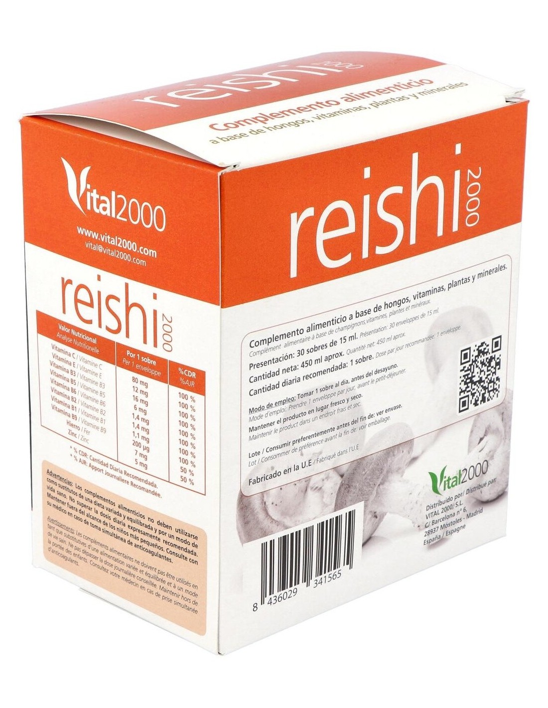 Composición por 1 cápsula: Reishi (216.61 mg), Shiitake (108.3 mg), Vitamina C (92 mg), Equinácea (54.15 mg), Sulfato de hierro heptahidratado (35 mg), Vitamina E (30.29 mg), Vitamina B3 (18.4 mg), Sulfato de zinc monohidrato (13.73 mg), Cola de Caballo (13.54 mg), Ginkgo (13.54 mg), Vitamina B5 (7.67 mg), Vitamina B6 (1.96 mg), Vitamina B2 (1.61 mg), Vitamina B1 (1.42 mg).