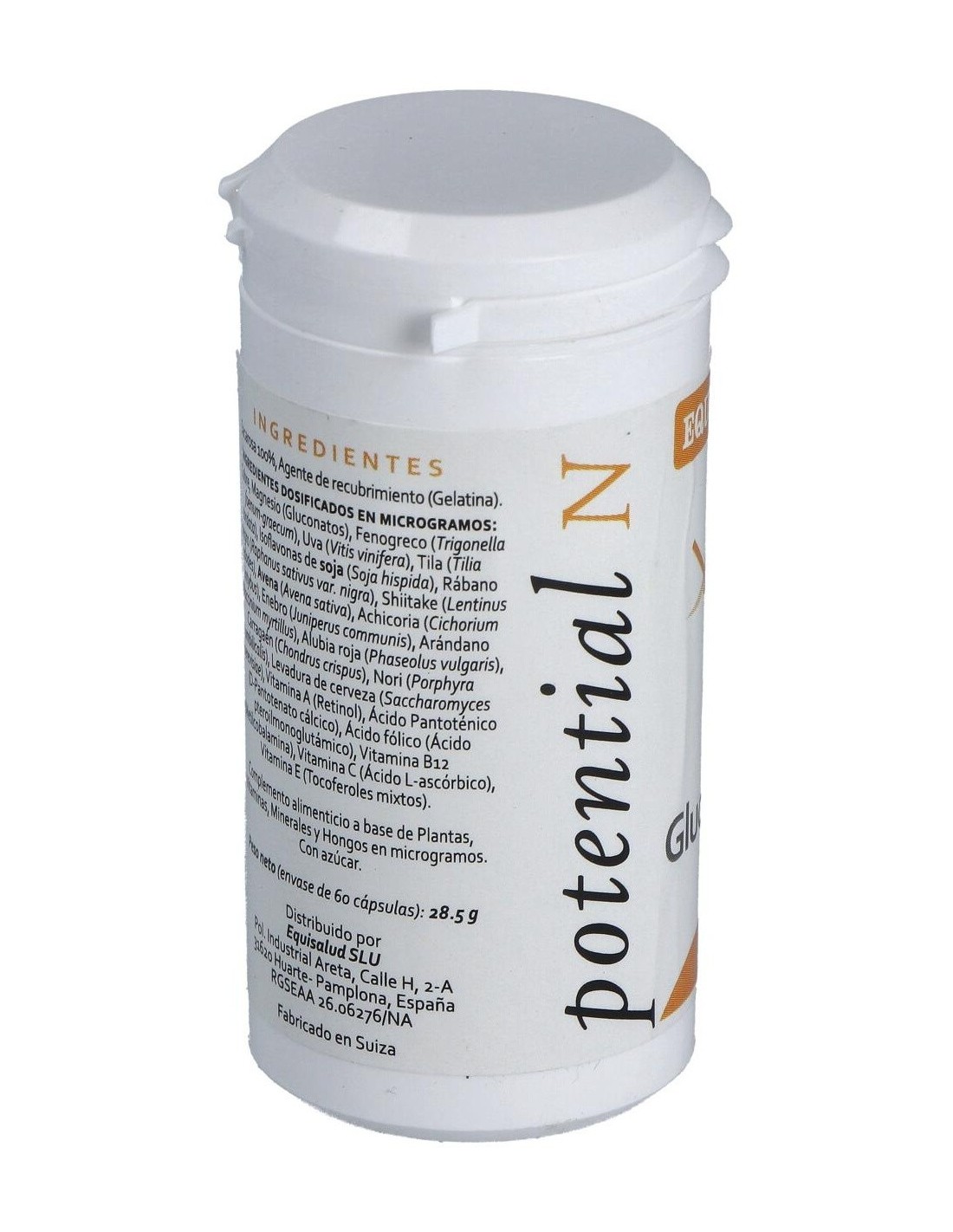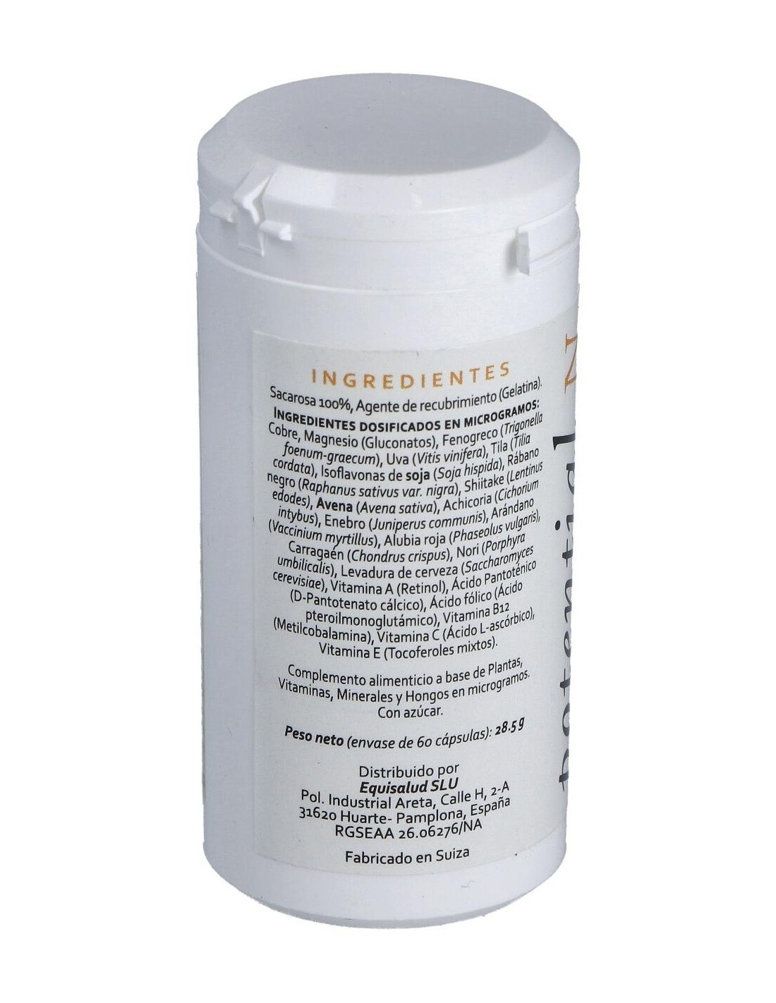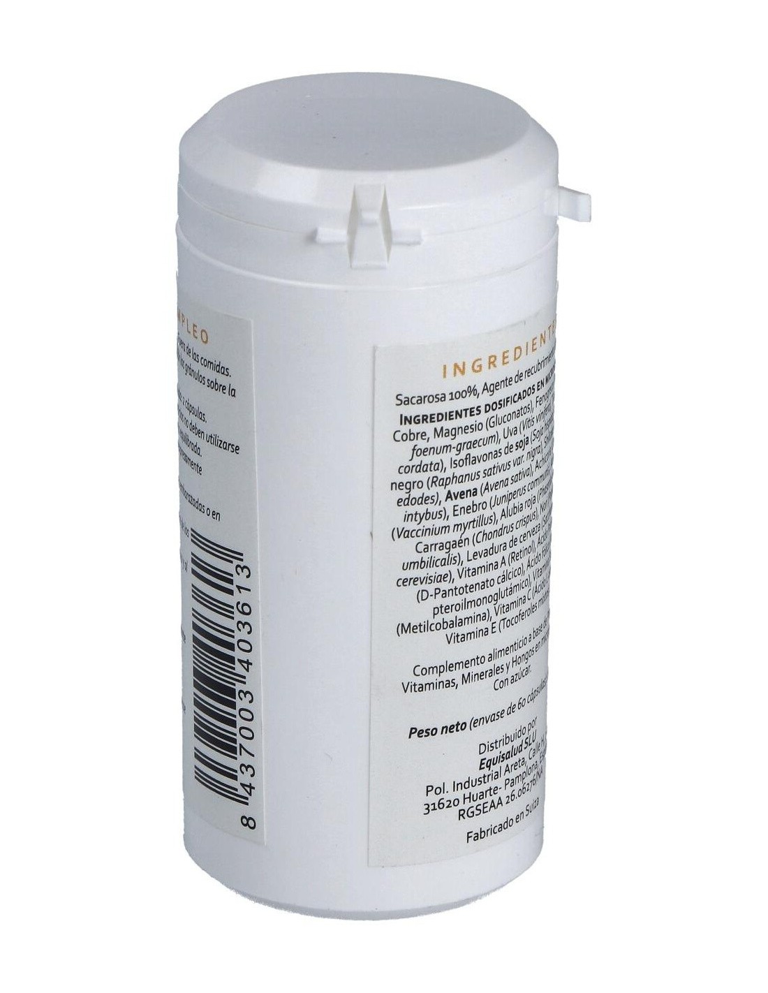 Minerales: cobre y magnesio (gluconatos). Plantas: fenogreco (Trigonella foenum graecum), uva (Vitis vinifera), tila (Tilia cordata), isoflavonas de soja (Soja hispida), rábano negro (Raphanus sativus var. nigra), avena (Avena sativa), achicoria (Cichorium intybus), enebro (Juniperus communis), arándano (Vaccinum myrtillus), alubia roja (Phaseolus vulgaris), carragaen (Chondrus crispus), alga nori (Porphyra umbilicalis), levadura de cerveza (Saccharomyces cerevisiae). Hongos: shiitake (Lentinus edodes). Vitaminas: vitamina A (retinol), ácido pantoténico (D pantotenato cálcico), ácido fólico (ácido pteroilmonoglutámico), vitamina B12 (metilcobalamina), vitamina C (ácido L-ascórbico), vitamina E (mezcla de tocoferoles). Envoltura: Agente de recubrimiento (gelatina), sacarosa 100%.