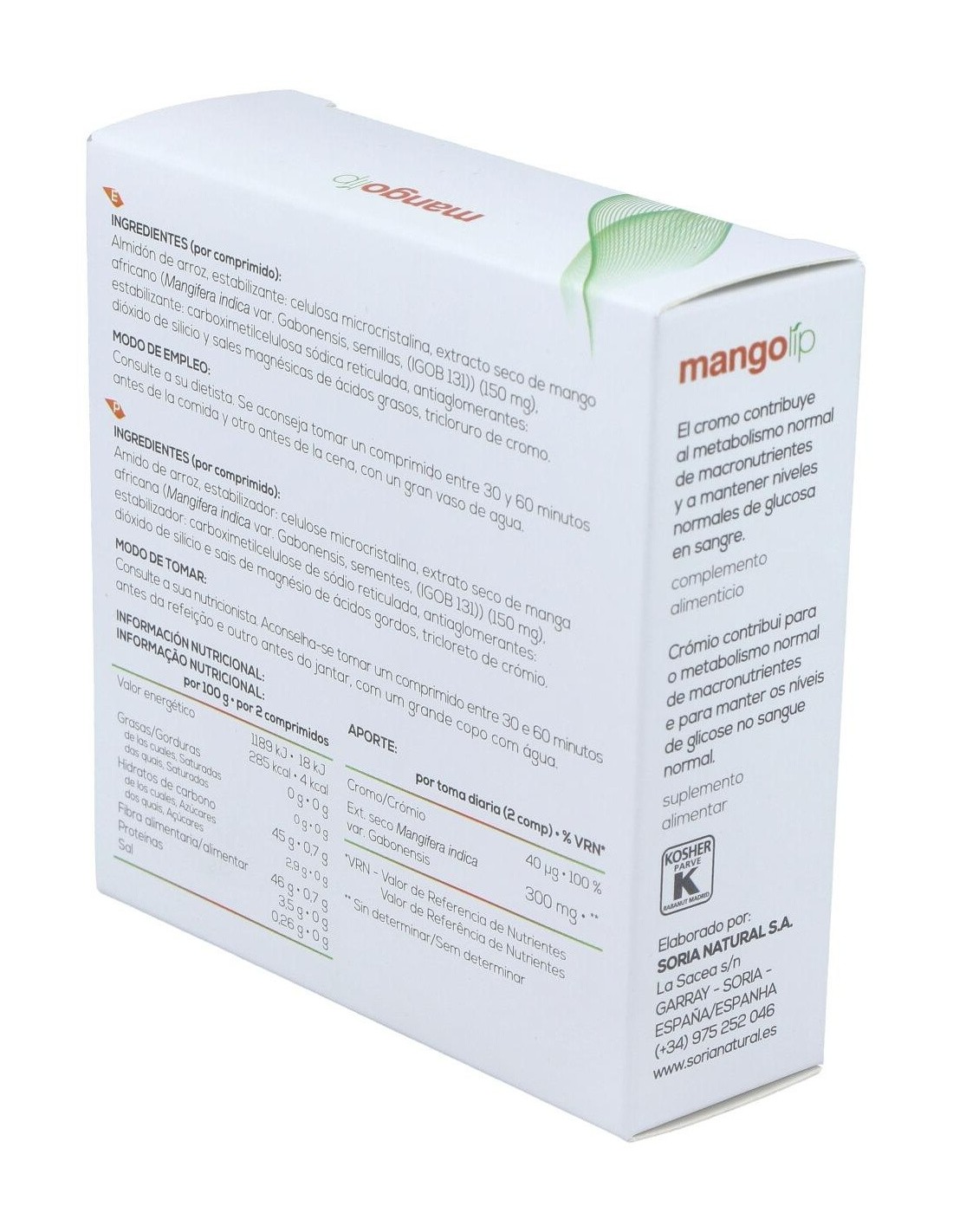 Los comprimidos de Mangolip 28Comp. de Soria Natural están elaborados con extractos vegetales cuidadosamente procesados para conservar sus propiedades. Su formato compacto permite una ingesta cómoda, ideal para quienes buscan complementar su alimentación con productos de origen natural.
