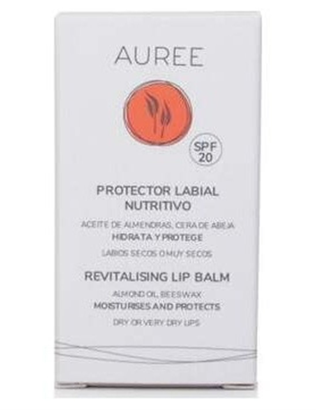 El protector labial nutritivo SPF 20 hidrata y protege los labios de la radiación solar y las agresiones externas. El aceite de almendras y la cera de abeja humecta y nutre los labios de manera rápida y prolongada.