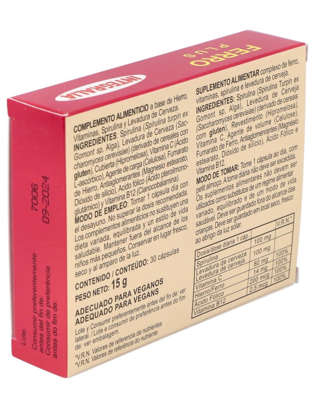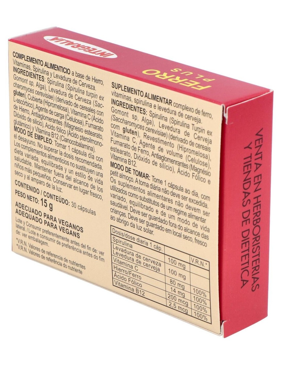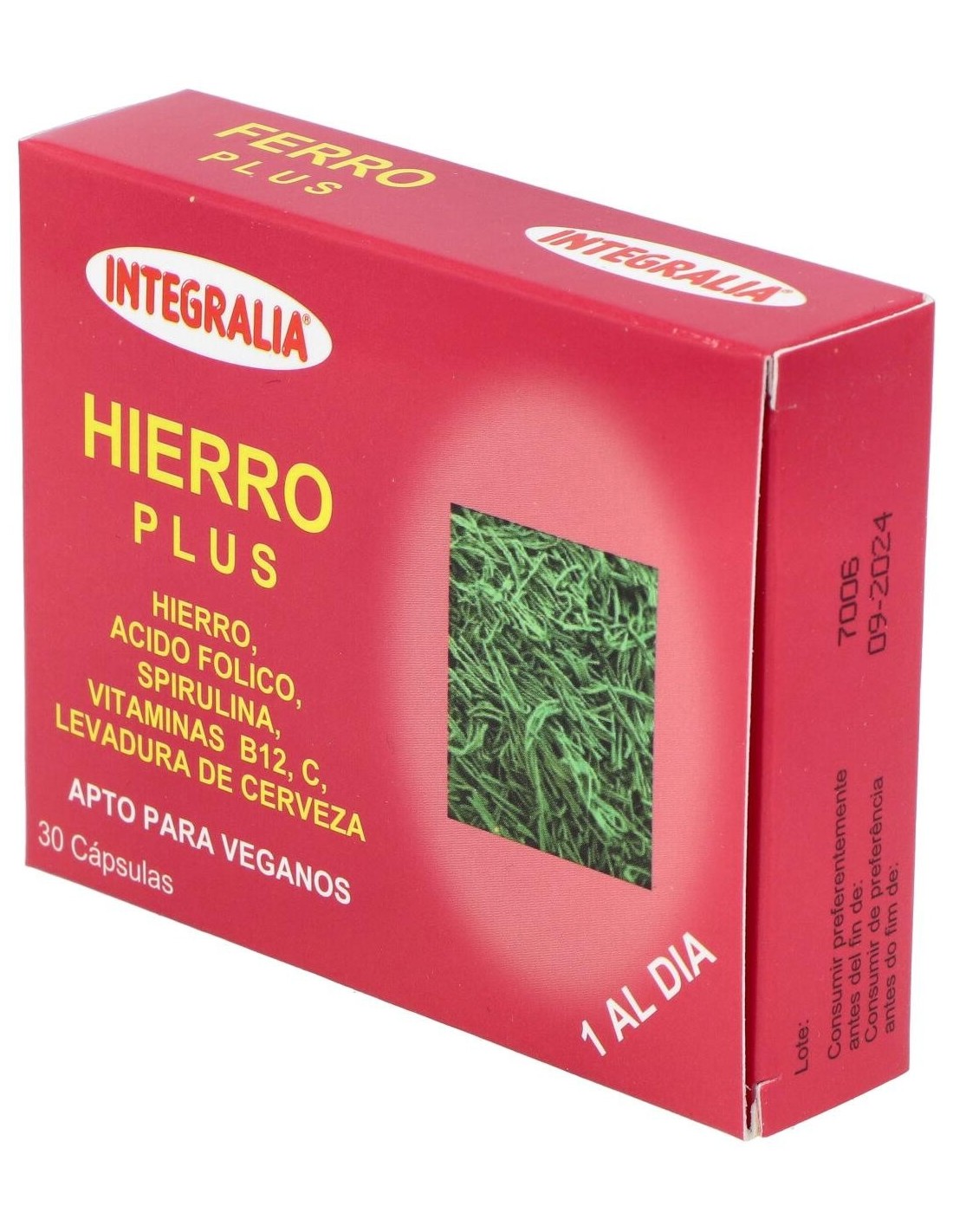 El hierro es un mineral, indispensable para la salud humana, cuya misión es permitir que el oxígeno llegue a las células a través del flujo sanguíneo. Estimula la función de la glándula tiroides, interviene en la síntesis del ADN, favorece la función de determinados neurotransmisores y frena la acción de los redicales libres. El hierro está presente en nuestro organismo en forma de hemoglobina, que es el pigmento rojo de la sangre. La asimilación de hierro es más fácil en la infancia y se reduce con la edad. Previene y remedia la anemia ferropénica, infunde energía y combate la fatiga.Composición por dosis diaria:
