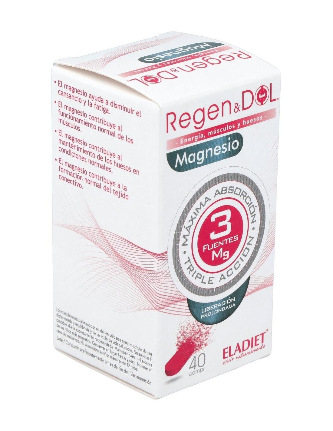 Complemento alimenticio en forma de comprimidos, elaborado a base de 3 fuentes de magnesio, que favorece el funcionamiento normal del sistema nervioso, de la función psicológica normal, y contribuye a disminuir el cansancio y la fatiga. El magnesio, además, interviene en el funcionamiento normal de los músculos y en el mantenimiento saludable de huesos y dientes.