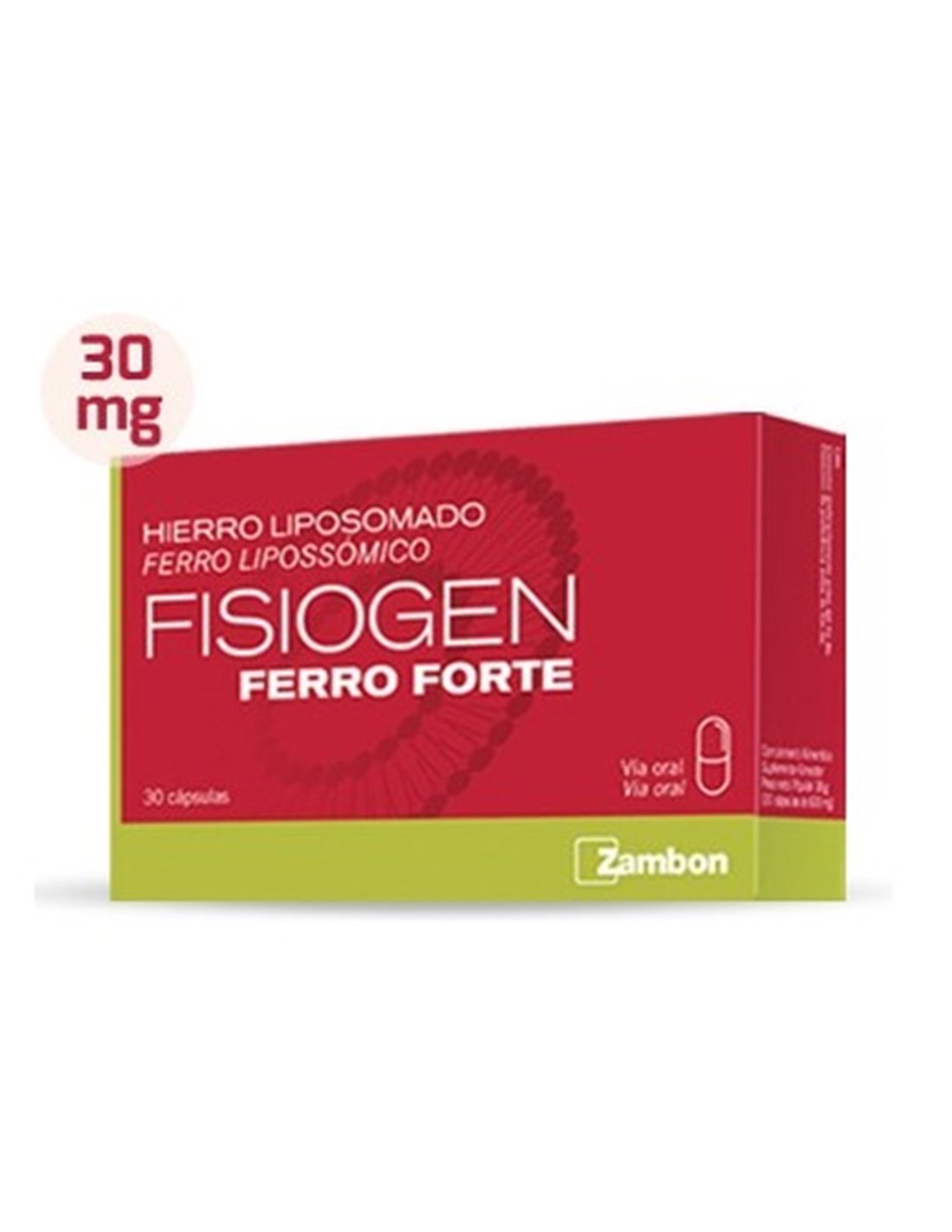 Complemento alimenticio con hierro sucrosomado, útil para cubrir la carencia alimentaria de hierro o en el caso de aumento de las necesidades de este nutriente.\ \ Fisiogen Ferro Forte es un suplemento diseñado específicamente para ayudar a satisfacer las necesidades del cuerpo en situaciones de carencia de hierro. Fisiogen forte es un suplemento oral liposomado está formulado con Hierro Sucrosomado, que consiste en hierro pirofosfato, almidón de arroz pregelatinizado, ésteres de sacarosa de ácido grasos, lecitina de girasol sobre soporte de jarabe de glucosa, fosfato tricálcico y proteína de la leche. Al enmascarar el hierro dentro de un liposoma, Fisiogen Ferro Forte facilita su absorción y biodisponibilidad, lo que favorece la adherencia y permite una mejor asimilación del hierro. Además, Fisiogen contiene ácido L-ascórbico (vitamina C)