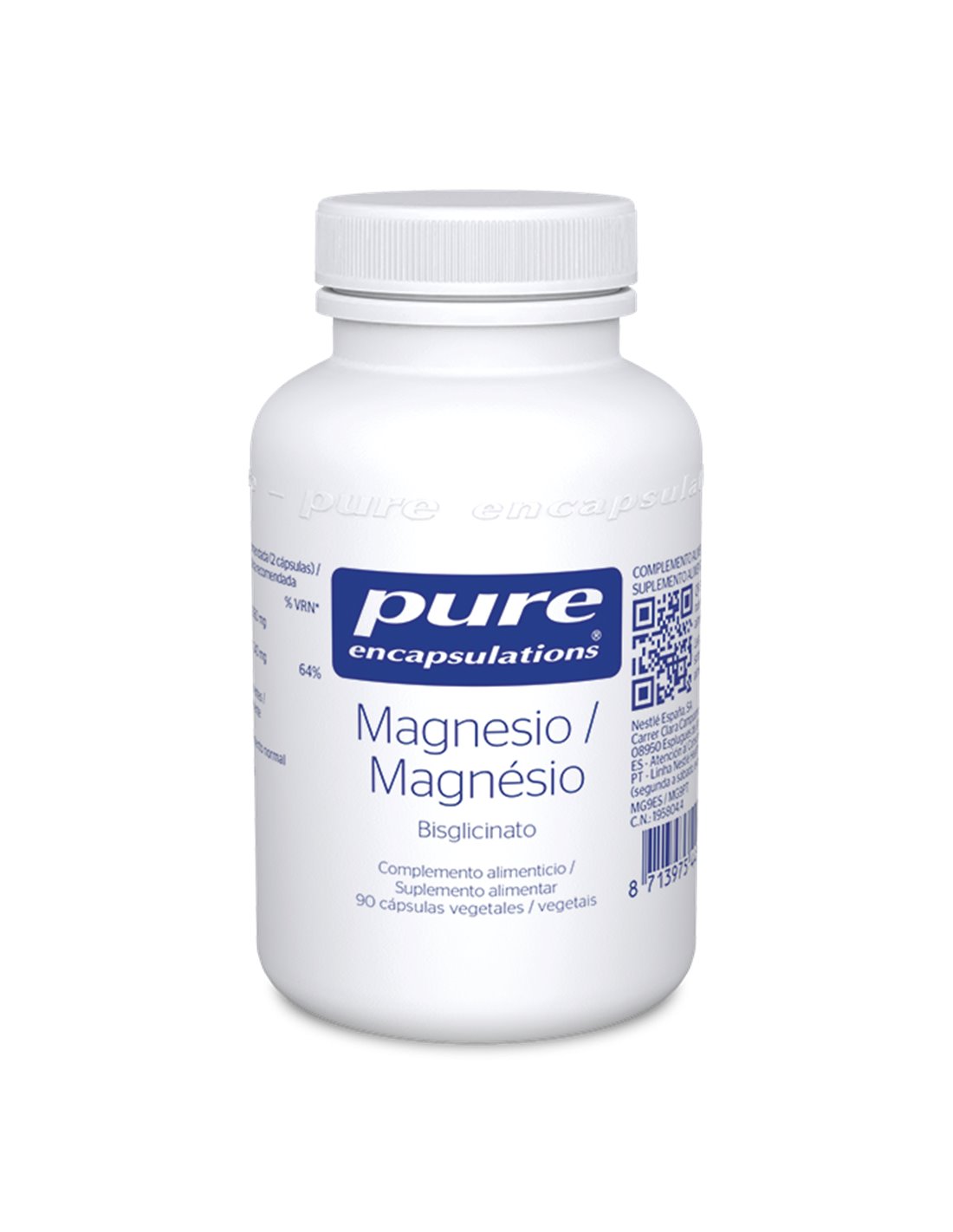 Pure® Encapsulations Magnesio está compuesto por magnesio quelado con glicina sintética, altamente biodisponible. El magnesio es un cofactor clave en