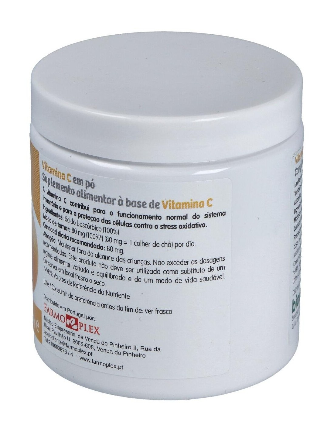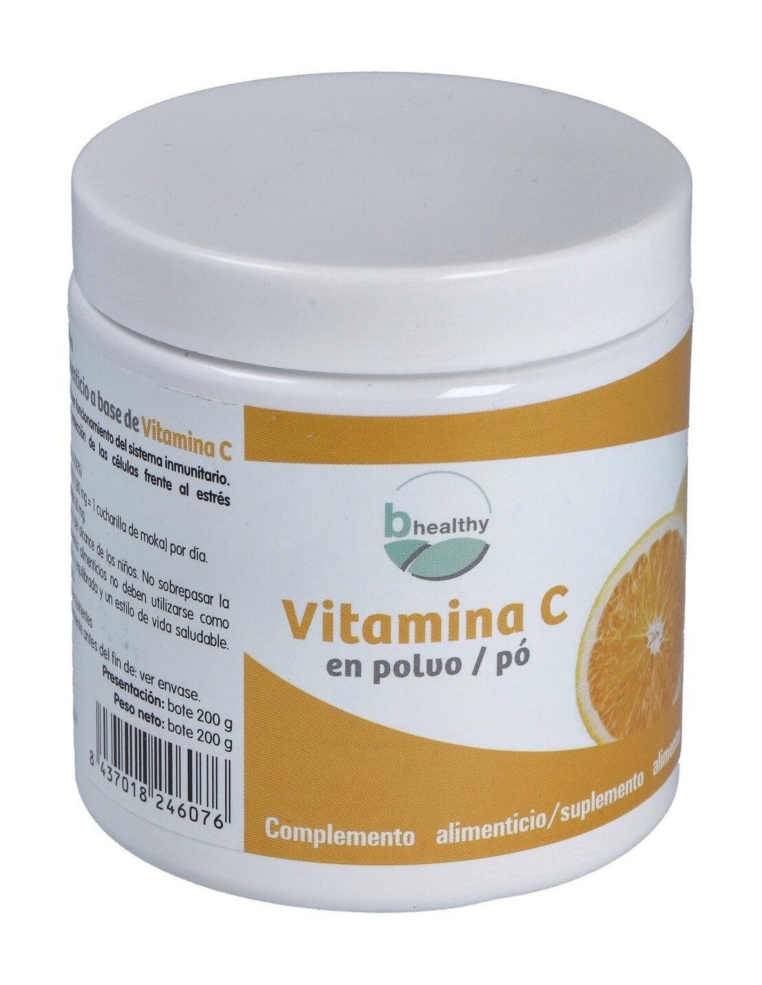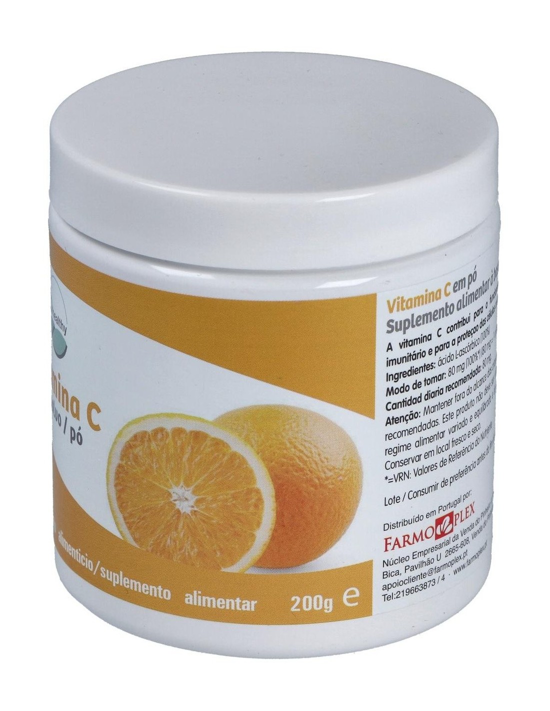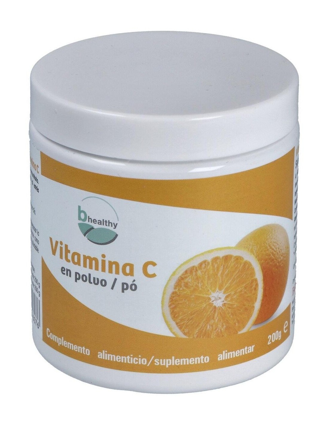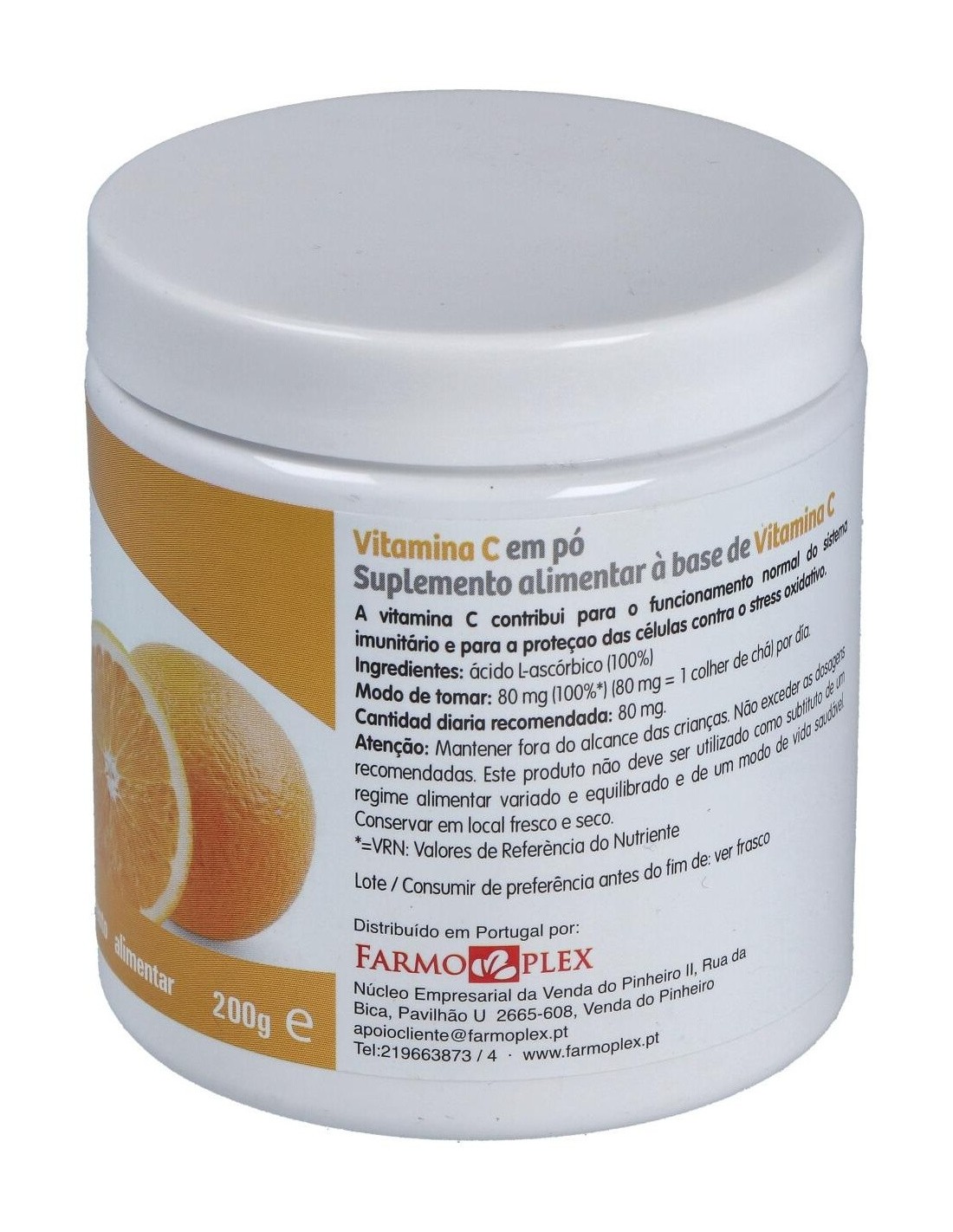 Complemento alimenticio a base de vitamina C (Ácido l-ascórbico) 100%. El producto presenta envase de 200g de contenido neto.