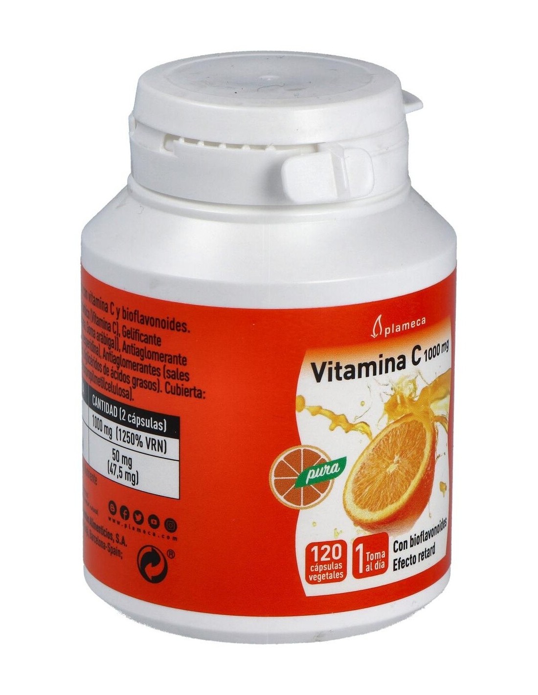 Plameca Vitamina C Pura 1000mg 120caps vegs es un complemento alimenticio a base de vitamina C que contribuye al funcionamiento normal del sistema inmunitario.