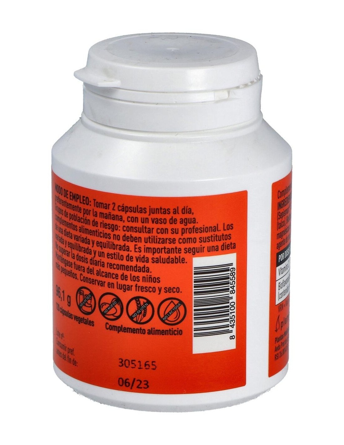 Tomar 2 cápsulas vegetales juntas al día, preferentemente por la mañana, con un vaso de agua. Los complementos alimenticios deben tomarse dentro de una dieta variada y equilibrada y como parte de un estilo de vida activo.