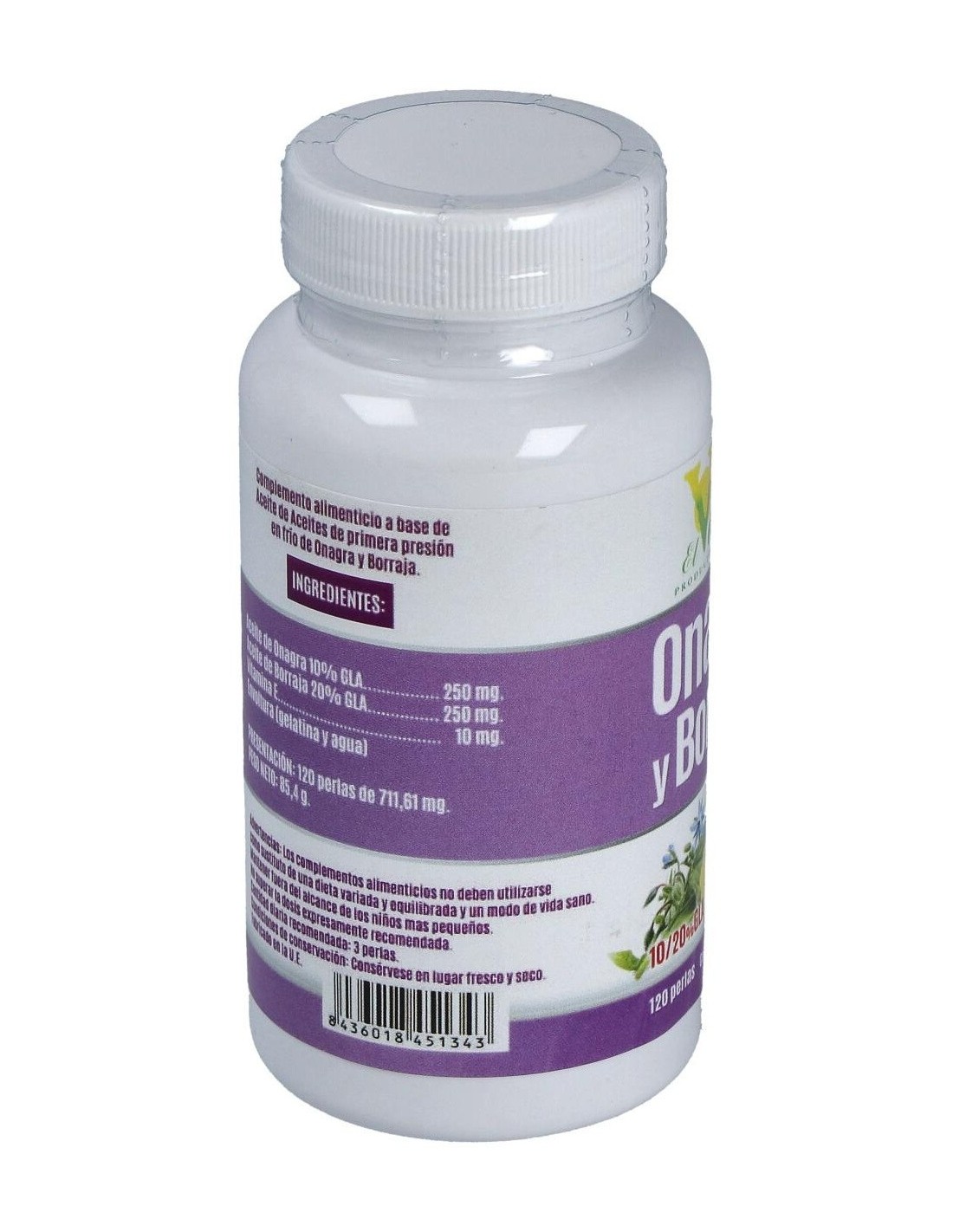 Complemento alimenticio basado en Onagra y Borraja, conservados tras la extracción de su aceite por presión en frío de sus semillas. Destacan por su riqueza en ácidos grasos esenciales necesarios para la correcta producción de prostaglandinas (precursores de las hormonas capaces de regular muchas funciones del organismo). Contribuye a paliar los síntomas premenstruales y a la salud de la piel, ayuda al control del colesterol y problemas del corazón, entre otros. También contiene sales minerales, vitamina E, mucílagos y flavonoides que le aportan propiedades diuréticas y sudoríficas, permitiendo la eliminación de toxinas.