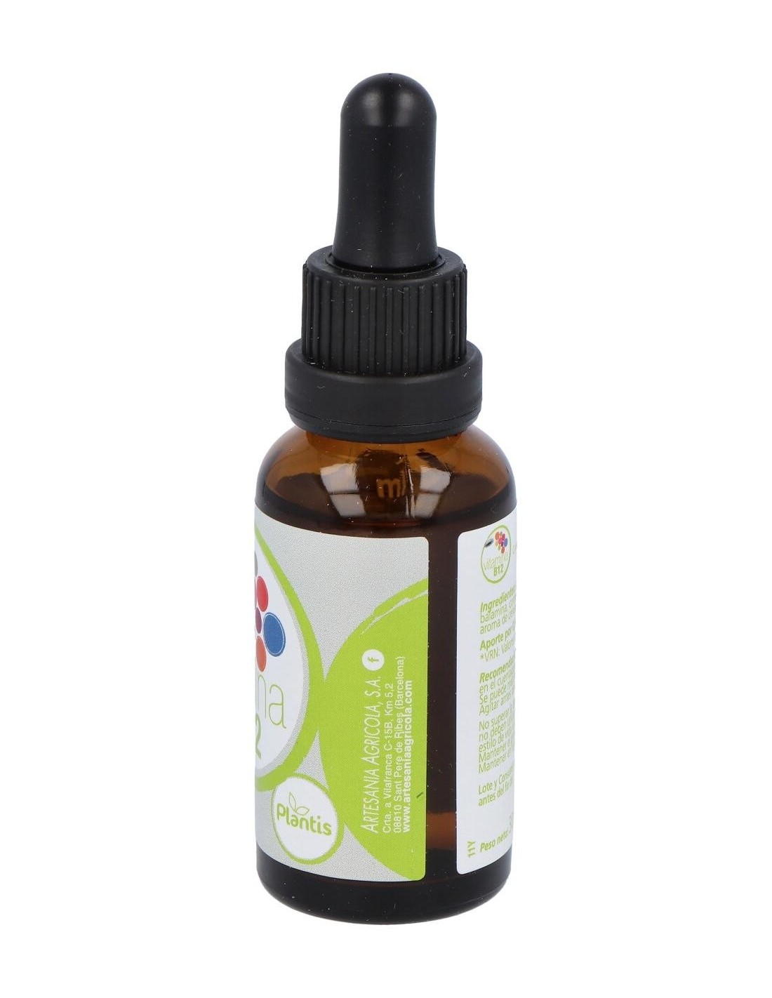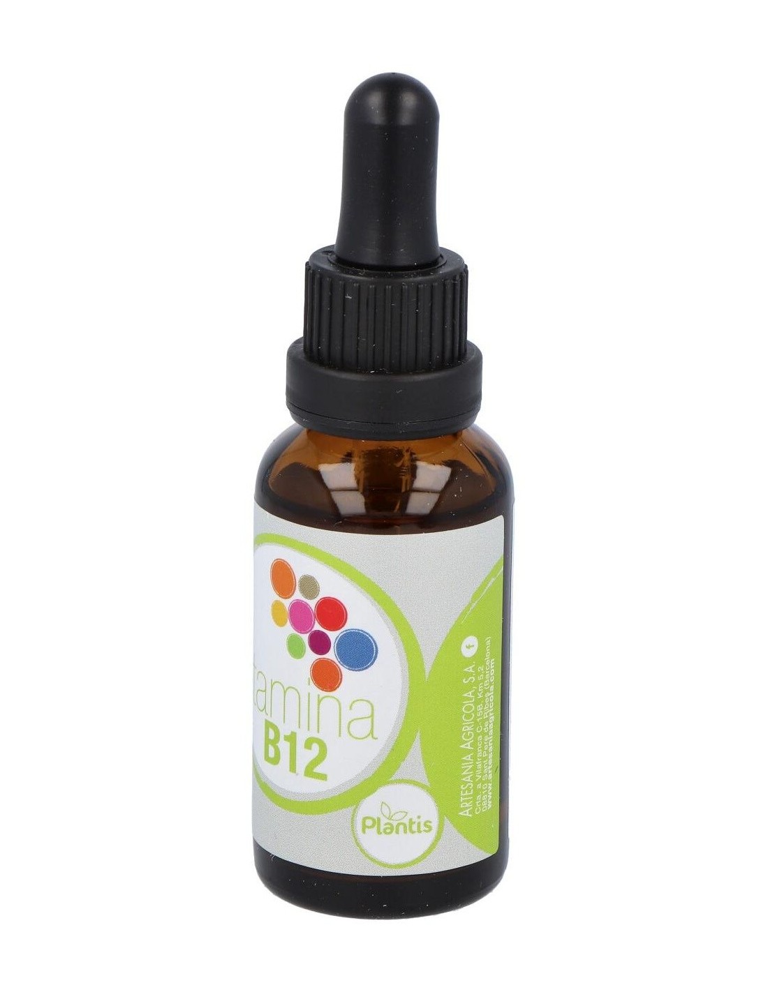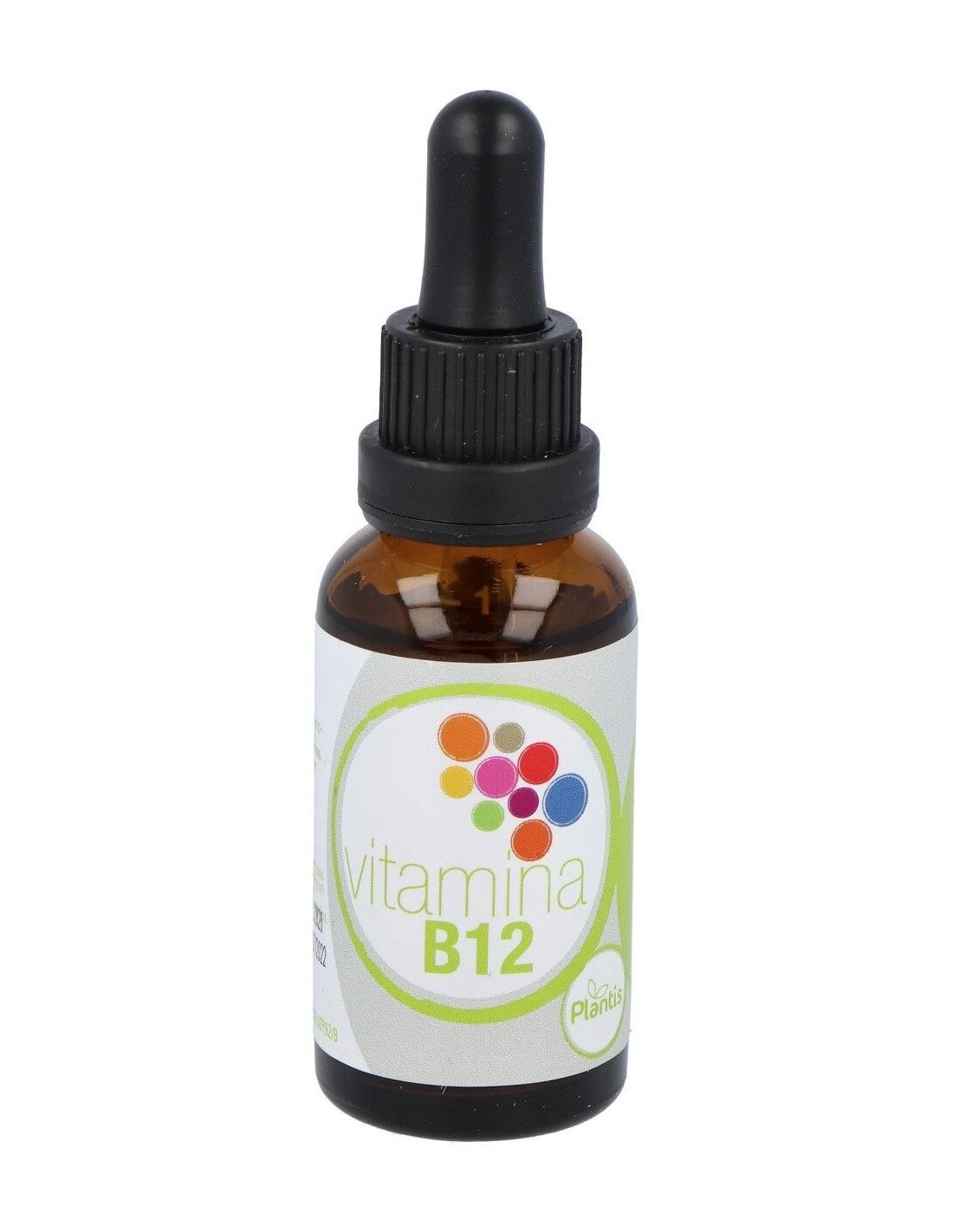 La vitamina B12 es una vitamina hidrosoluble que se sintetiza por un gran número de bacterias intestinales que se hallan de modo habitual en el organismo humano, sin embargo, el aprovechamiento de la vitamina B12 es mínimo, ya que la síntesis ocurre en sitios muy alejados del lugar de absorción fisiológica de la vitamina, por tanto, su ingesta a través de los alimentos es muy necesaria.La vitamina B12 sólo se encuentra en carnes y lácteos y es por ello que veganos y vegetarianos suelen necesitar una suplementación para compensar su déficit. Es necesaria para la elaboración de las células, la síntesis de la hemoglobina y el sistema nervioso nervioso.Composición activa por 0,5 ml:2,5 mcg de vitamina B12.Ingredientes:Agua, fructosa, acidulante (ácido cítrico), cianocobalamina, conservadores (benzoato sódico, sorbato potásico), aroma de cereza.Modo de empleo:Tomar 0.5 ml al día (señalado en el cuenta gotas), preferentemente por la mañana. Se puede mezclar con una bebida o tomarlo directamente. Agitar antes de usar.Presentación:Envase de 30 ml.Recomendaciones y advertencias:No contiene gluten, lactosa. Apto para veganos.