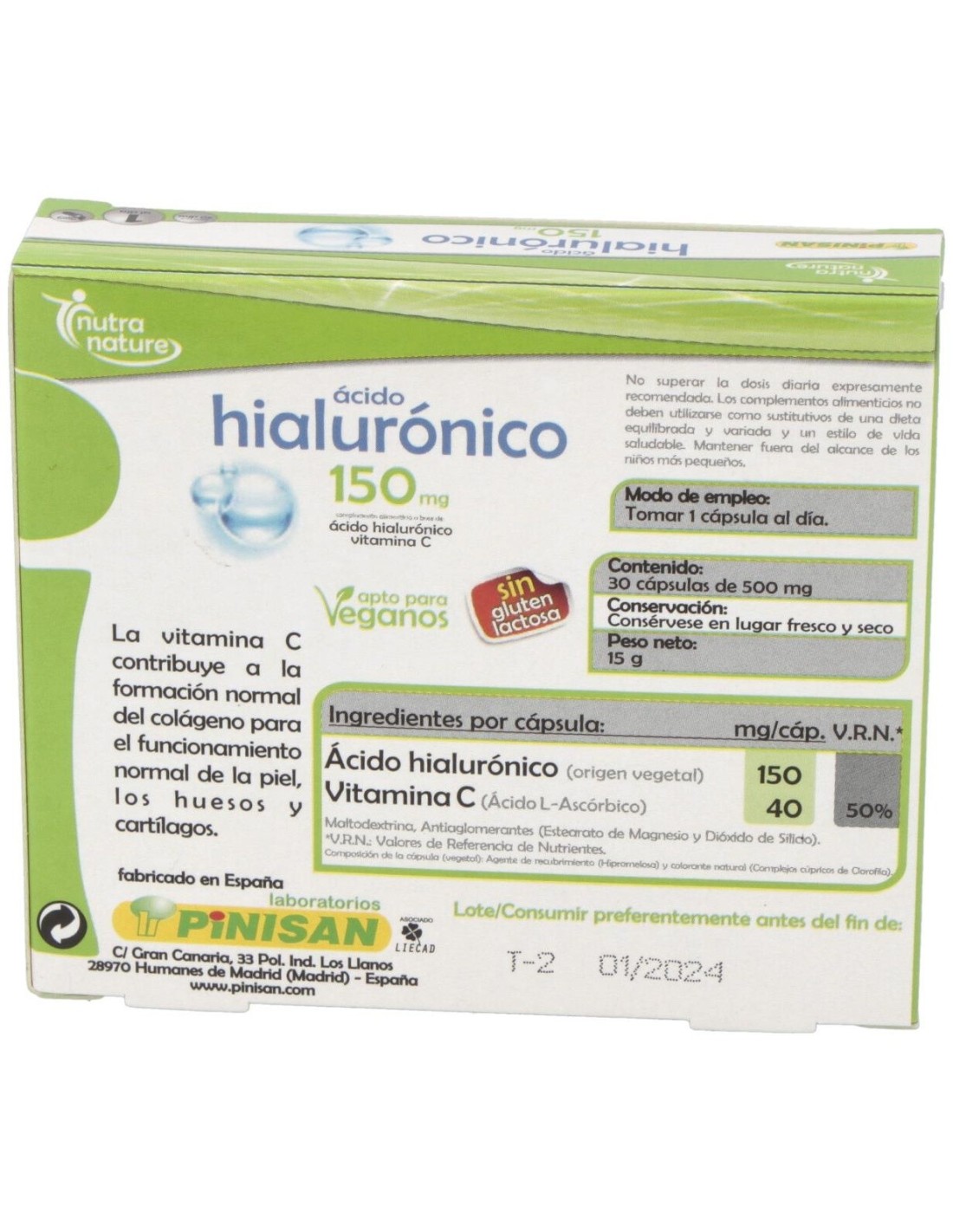150 mg de ácido hialuróico (origen vegetal).