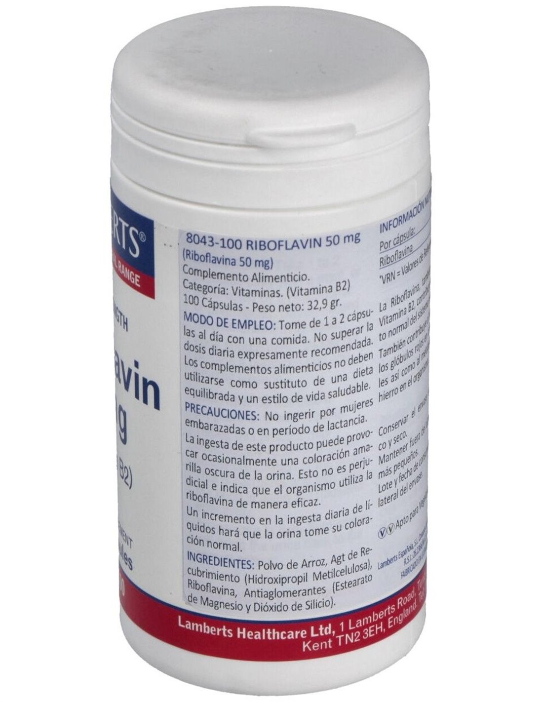 Riboflavina 50 mg (Vitamina B2) 100 Caps. de Lamberts