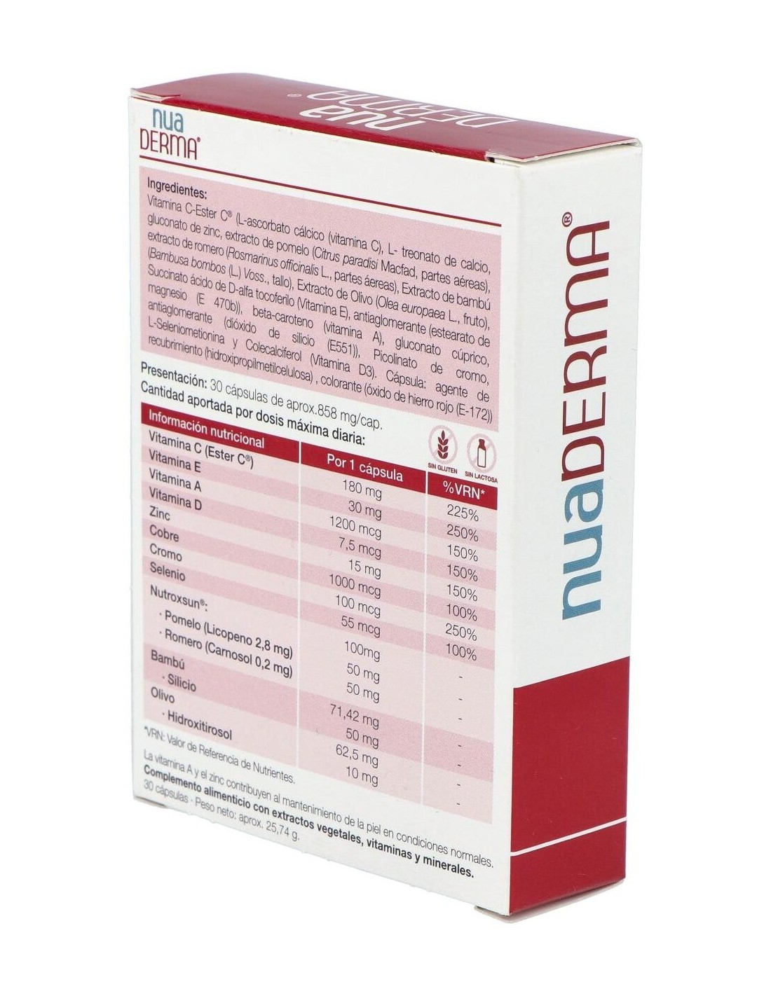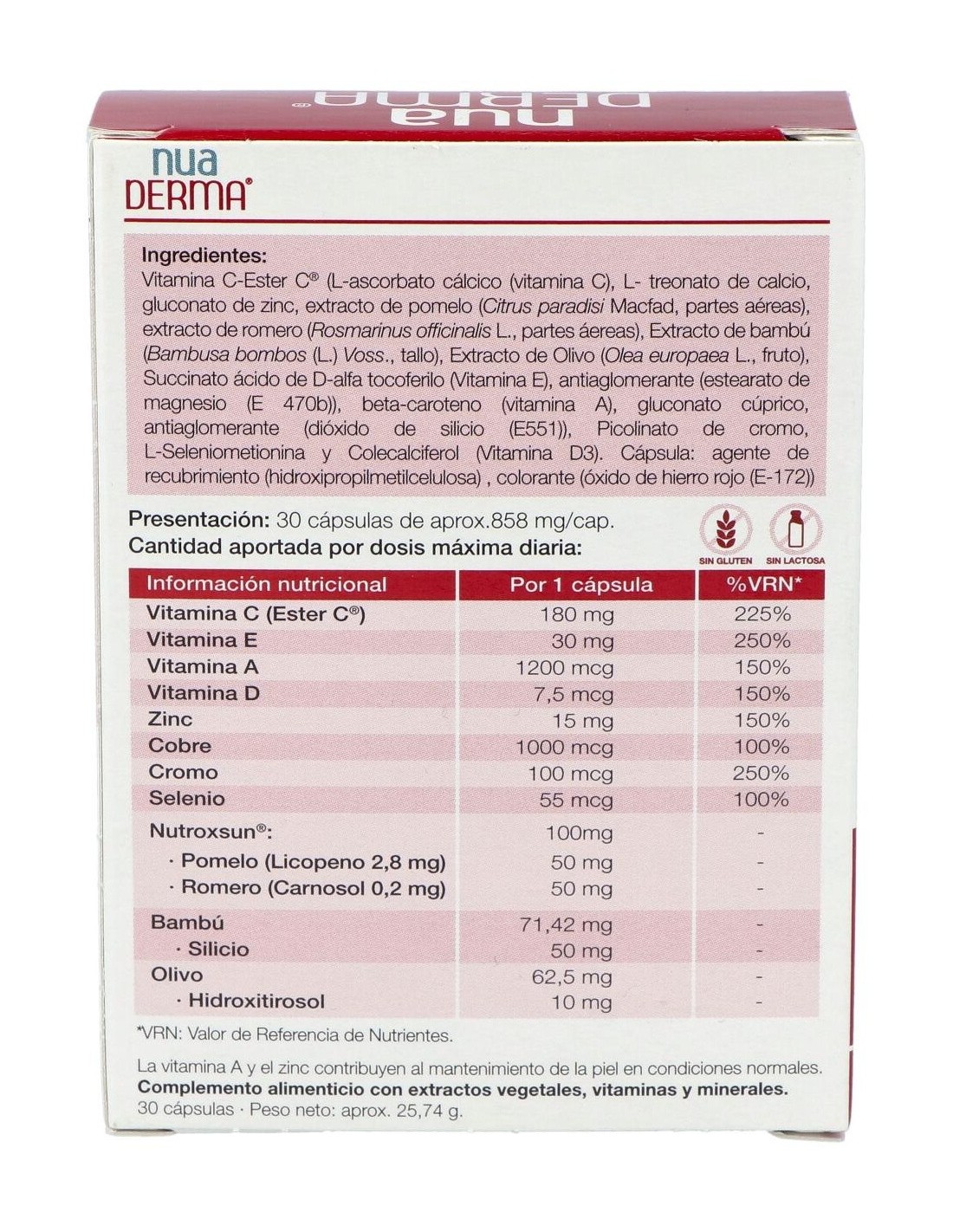 Olivo (hidroxitirosol), Nutroxsun (Pomelo y Romero), Vitamina C, Vitamina D3, Vitamina E, Vitamina A como betacaroteno, Bambú (silicio orgánico), Zinc, Selenio, Cobre, Cromo.