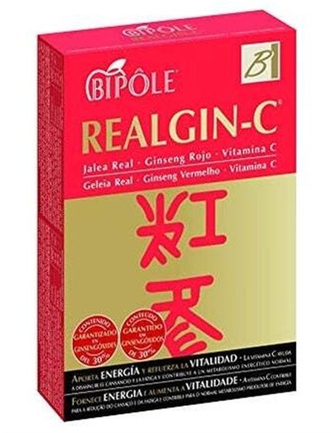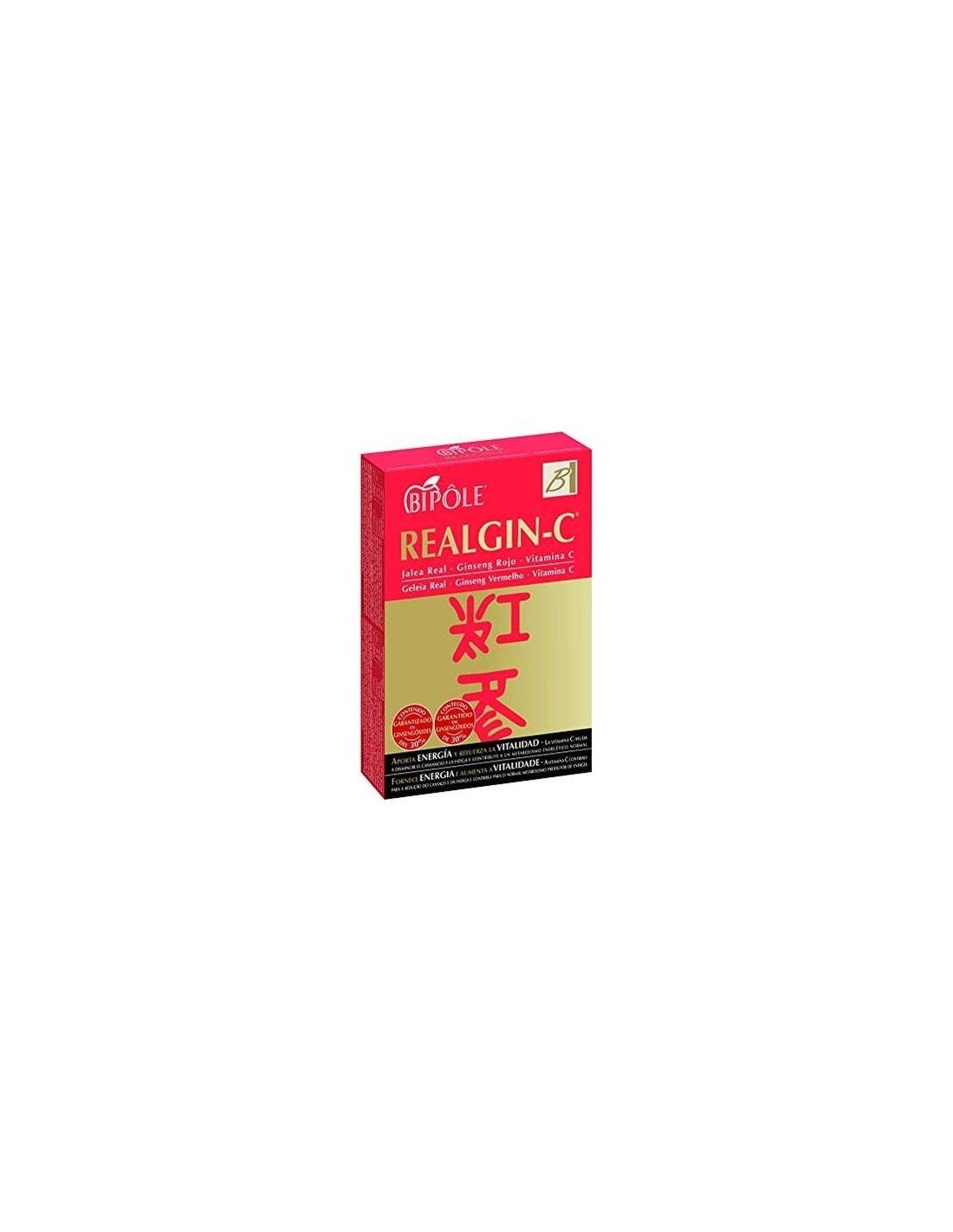 Realgin C aporta una dosis extra de energía y ayuda a reforzar el sistema nervioso. Contiene vitamina C que ayuda a reducir el cansancio y la fatiga, además refuerza el sistema inmune. Entre sus ingredientes está la raíz de ginseng coreano que concentra nutrientes que aportan bienestar. Finalmente, contiene jalea real que tiene propiedades energéticas, vitalizadoras y activadoras de las defensas del cuerpo.