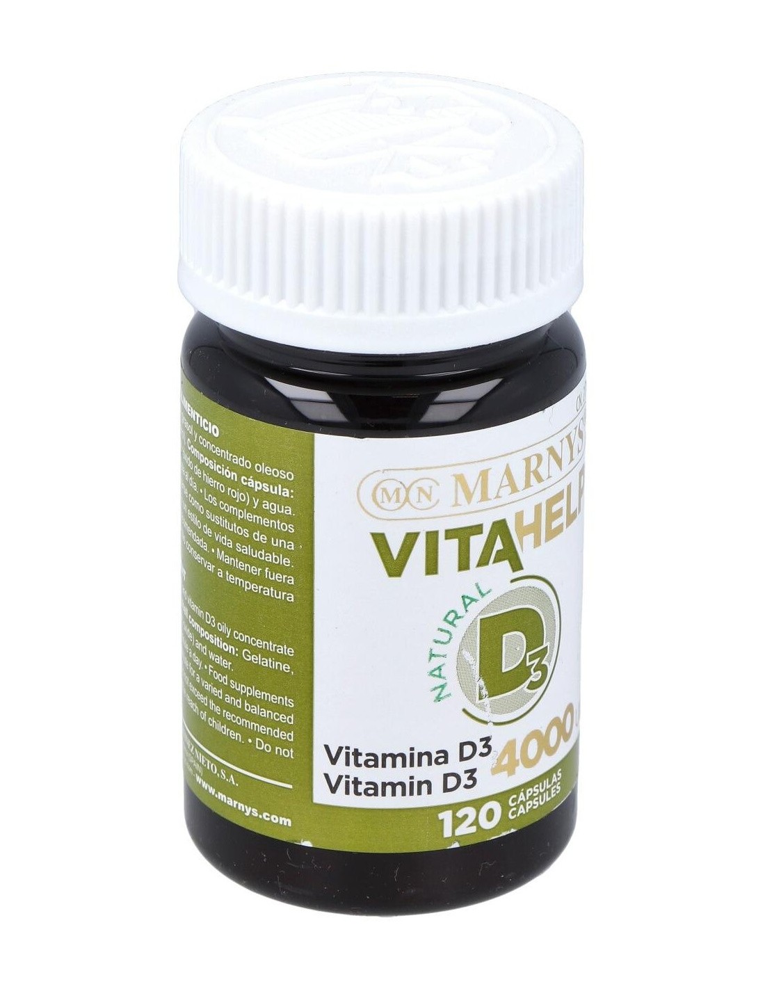 Vitahelp Vitamina D 4000Ui 120Perlas de Marnys es un suplemento para personas que buscan mantener niveles adecuados de vitamina D, aportando una dosis concentrada en perlas fáciles de consumir.