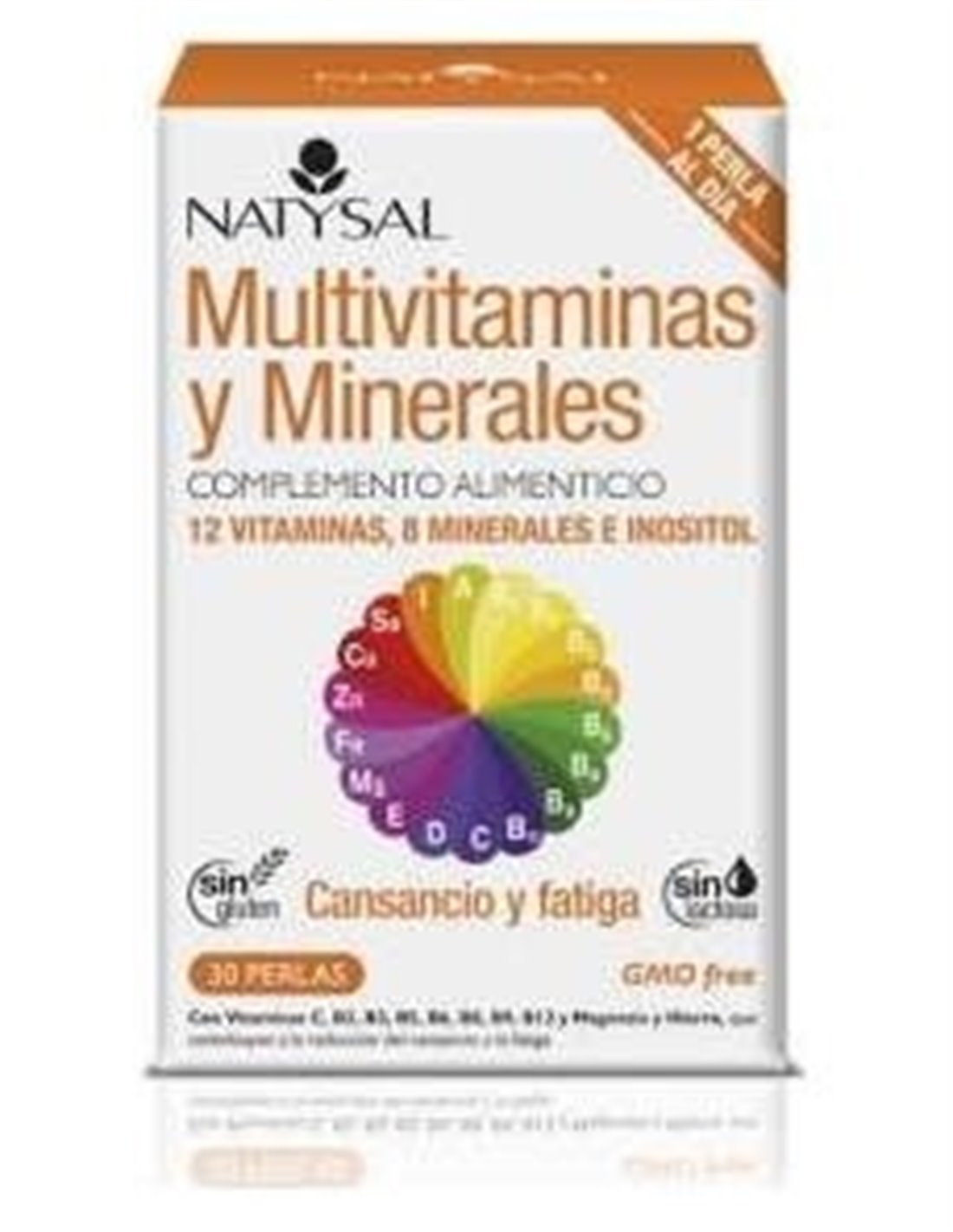 Ingredientes:Aceite refinado de semillas de girasol (Helianthus annuus L.), óxido de magnesio, antiaglomerante calcio fosfato dibásico, vitamina C (ácido L-ascórbico), emulgente cera amarilla de abejas, inositol, sulfato de hierro, sulfato de zinc, emulgente lecitina de semillas de Soja, vitamina E (D-alfa tocoferol), niacina (nicotinamida), ácido pantoténico (D-pantotenato de calcio), sulfato de manganeso, vitamina A (palmitato de retinilo), sulfato de cobre, vitamina B12 (cianocobalamina), vitamina B6 (clorhidrato de piridoxina), vitamina B2 (riboflavina), vitamina B1 (mononitrato de tiamina), yodato de potasio, vitamina D3 (colecalciferol), ácido fólico (ácido pteroilmonoglutámico), molibdato de sodio, selenito de sodio, biotina (D-biotina). Cubierta de la cápsula: gelatina, humectante glicerina, colorante óxido de hierro negro.Modo de empleo:Tomar 1 perla al día.Presentación:Bote de 30 perlas.