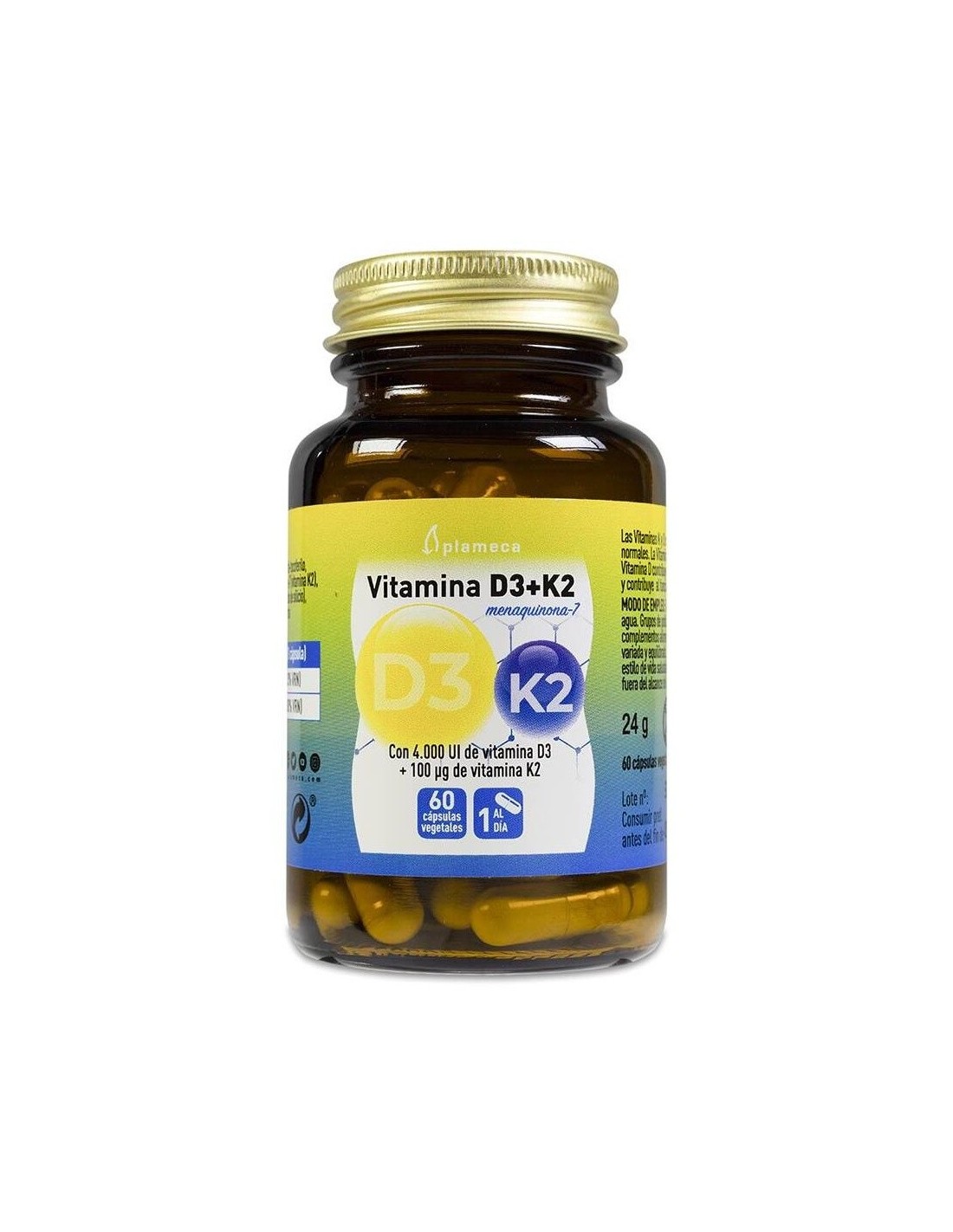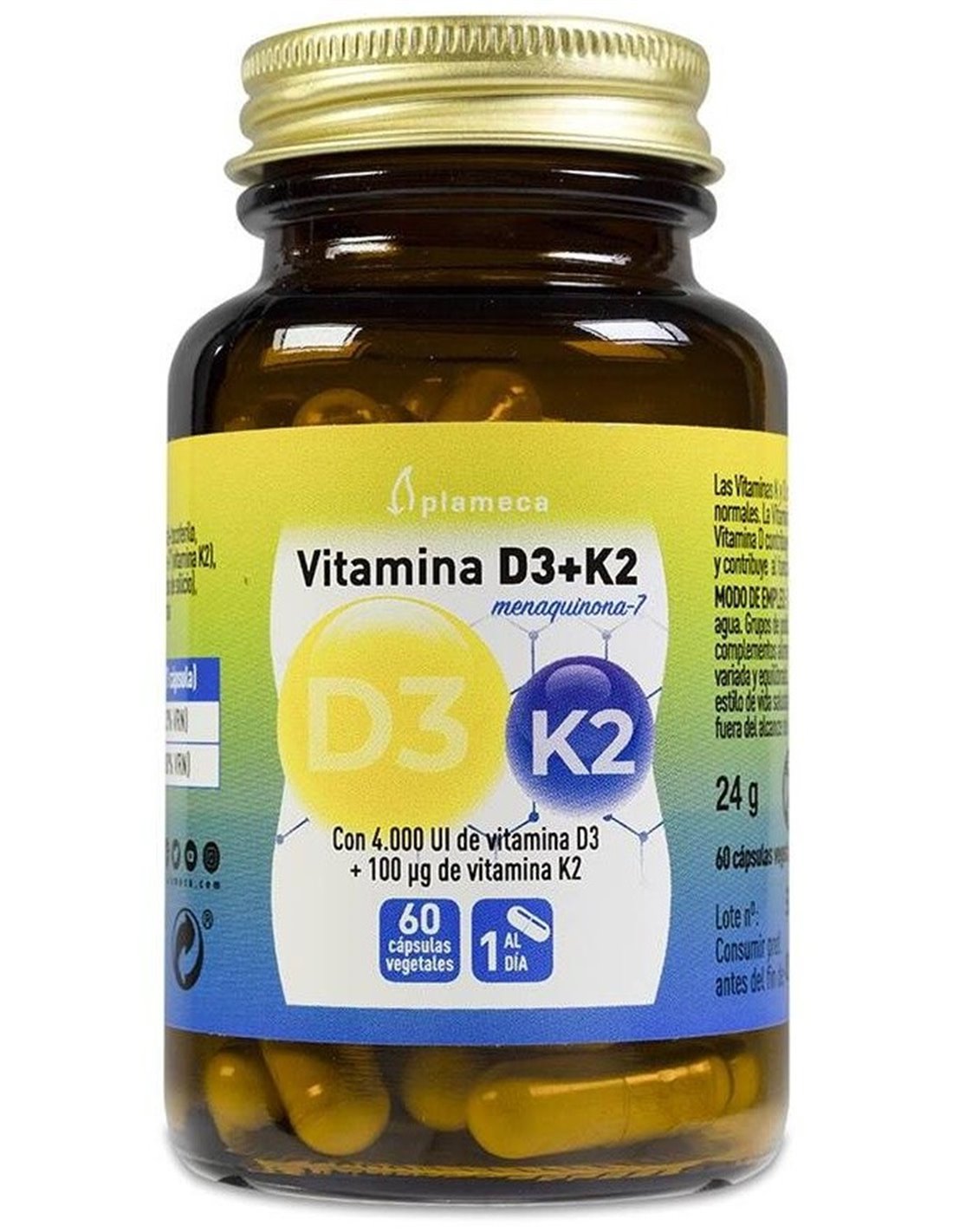 Complemento alimenticio indicado para la prevención y tratamiento para personas que tienden a tener los huesos débiles y que adelgazan mucho, indicado en adultos, especialmente durante la menopausia. También está recomendado su uso durante el embarazo. Debido al alto contenido en vitamina D y K está recomendado sólo para la edad adulta. Las Vitaminas D3 y K2 son la combinación perfecta para el máximo aprovechamiento del calcio, contribuyendo al mantenimiento de los huesos y evitando los depósitos de calcio en las arterias. Aporta la dosis máxima diaria de vitamina D3 (4.000 UI) y un 133% del VRN de vitamina K2 (100 µg) en la forma con mayor biodisponibilidad y mayor permanencia en el torrente sanguíneo, la menaquinona-7.