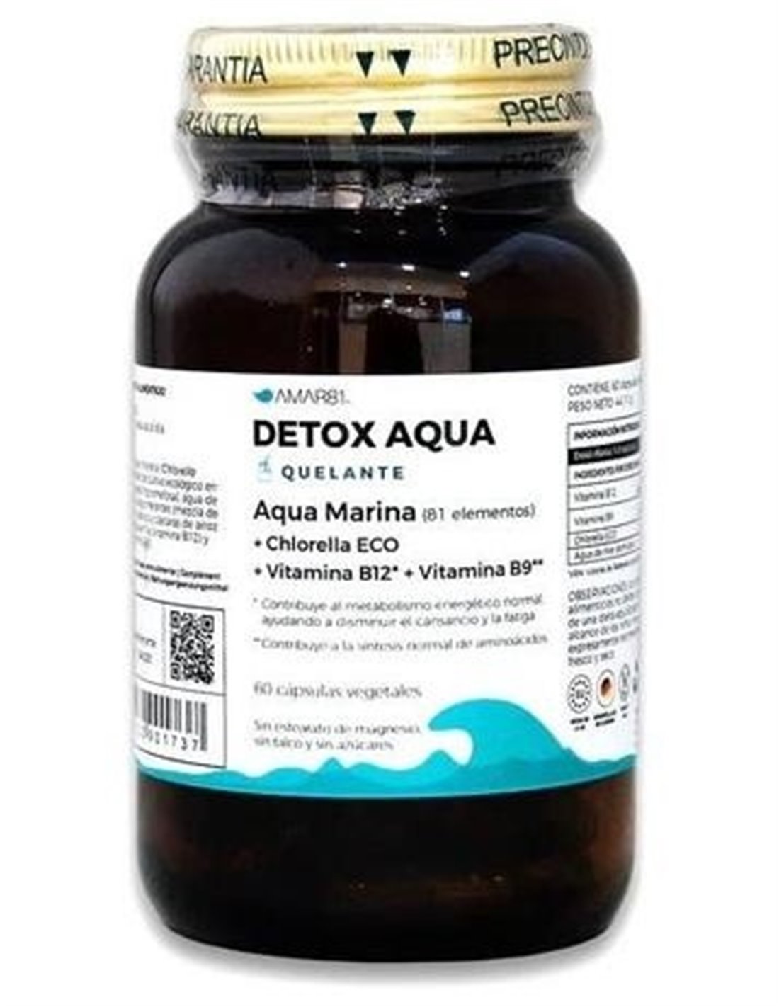 Complemento alimenticio quelante gracias a la presencia de la alga chlorella bio, junto a la vitamina B12, la cual contribuye al metabolismo energético normal, ayuda a disminuir el cansancio y la fatiga y vitamina B9, que apoya la síntesis normal de aminoácidos. Este producto se puede combinar con otras referencias de AMAR81.