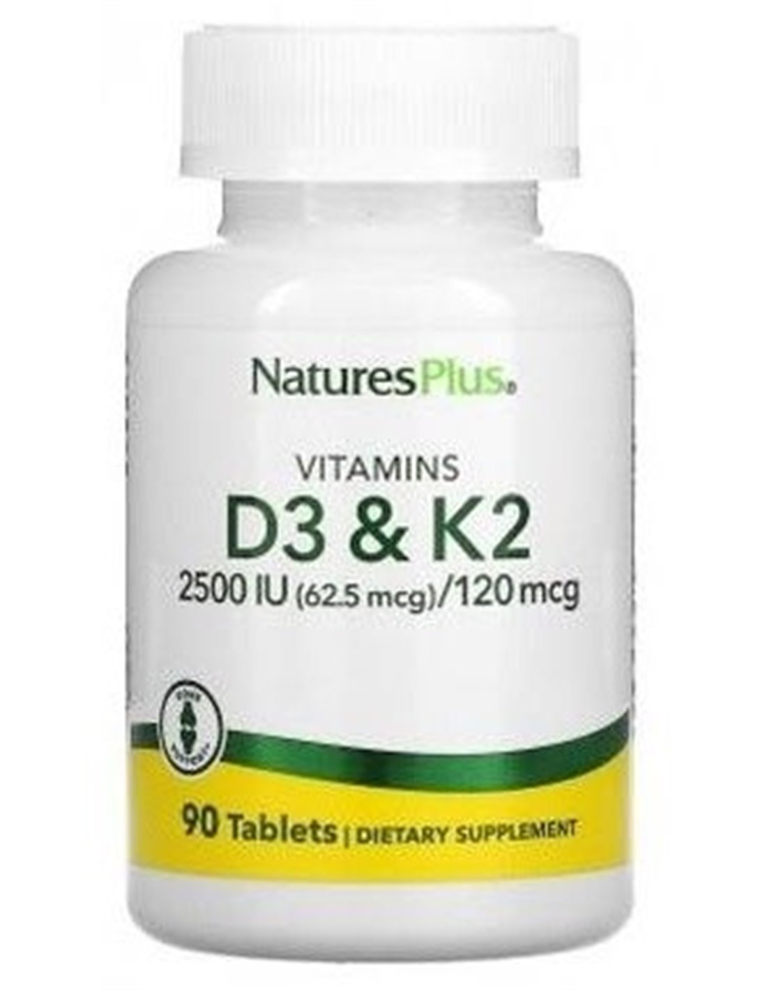 NATURES PLUSComplemento de Vitamina D3 y Vitamina K2 que favorece el mantenimiento de los aportes vitamínicos diarios de forma equilibrada. Se debe sospechar deficiencia de Vitamina D en pacientes con poca exposición a la luz solar y una ingesta dietética baja. Apto para vegetarianos.