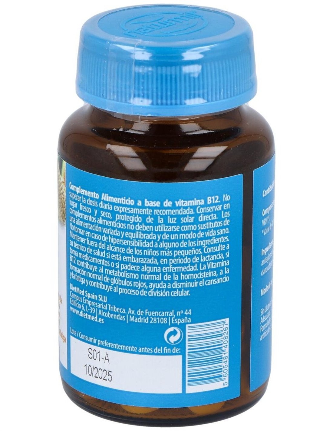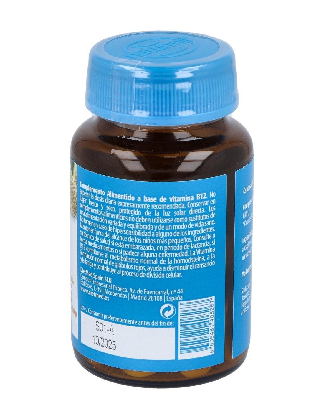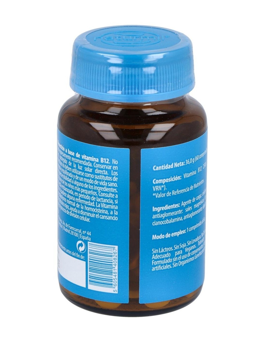 Este suplemento está elaborado con ingredientes seleccionados para asegurar la estabilidad y biodisponibilidad de la vitamina B12. Su presentación en comprimidos facilita su incorporación en la rutina diaria, adaptándose a diferentes estilos de vida.