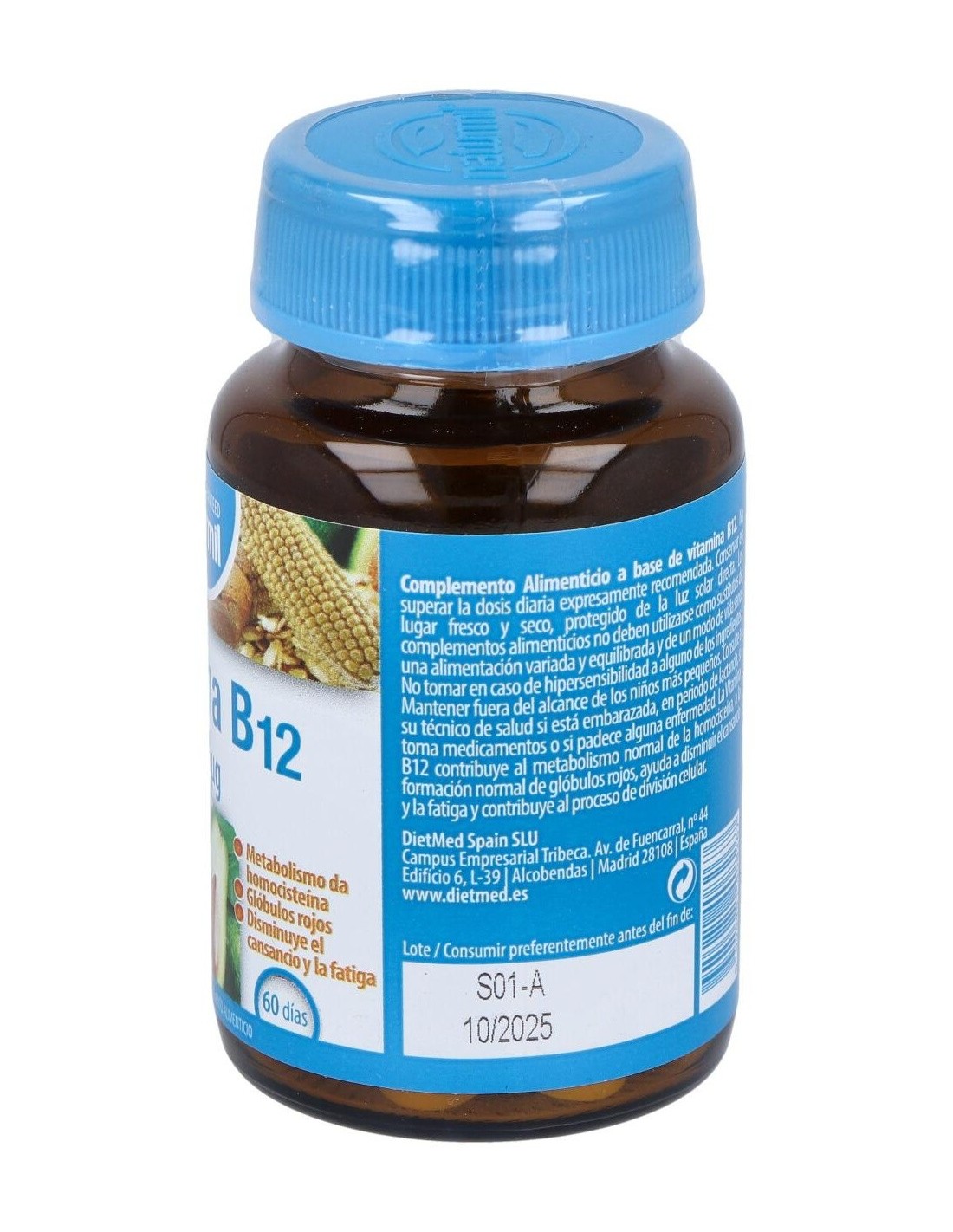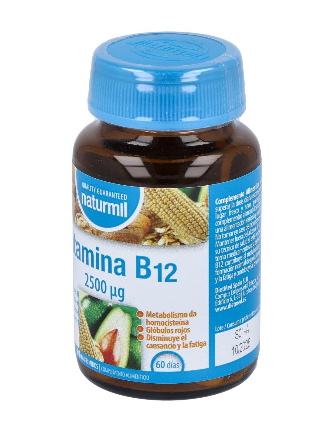 Vitamina B12 2500µg 60Comp. de Dietmed es un suplemento diseñado para personas que buscan mantener niveles adecuados de vitamina B12 en su dieta diaria. Es adecuado para quienes desean apoyar funciones metabólicas y el bienestar general mediante una fórmula dosificada de manera precisa.