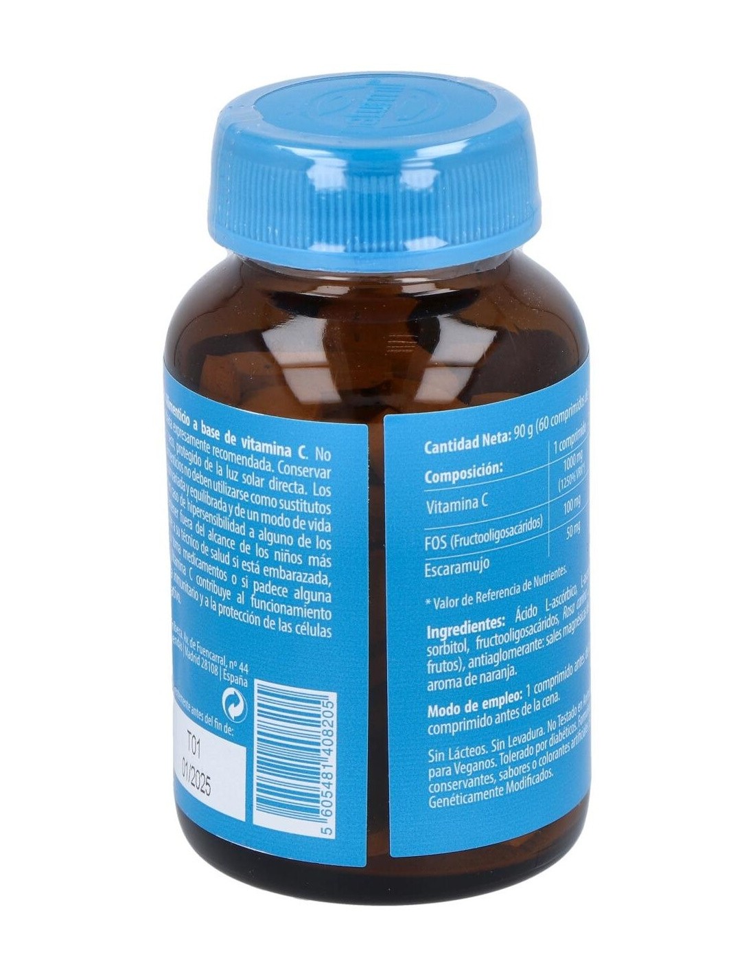 Este suplemento está elaborado con ingredientes seleccionados para asegurar la estabilidad y calidad del principio activo. Su presentación en comprimidos permite una dosificación sencilla, ideal para quienes buscan integrar la vitamina C en su alimentación diaria sin complicaciones.